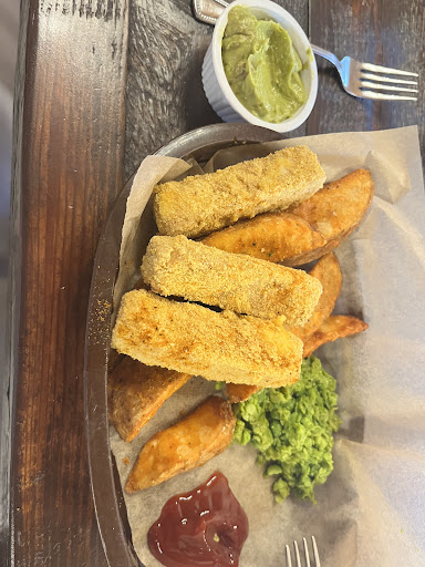 It took a while for a server to come to our table. But we knew what we wanted. Two vegetarian entrées, the only ones on the menu, and two bison burgers. The vegetarian entrées were terrible. The tofu had a cornmeal on the outside that was flavorless. It tasted like you were eating grains of sand. The guacamole that came on the side was not like guacamole. It was like a green goo. And the cold mash peas were utterly disgusting. Again, flavorless. The fries were good, thank goodness because that was our dinner. It was a hodge podge if grossness.