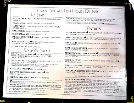 In a word, my dining experience here was terrible. When we made a reservation, our first choice of dinner time was 6:10 but later they told us to come 8:30. We understood. it's busy season. So We got there 8:20. But it was after about 40mins when we were seated! We already chose our dishes about a month ago on the internet when we made a reservation(they had this form to be filled out). We thought they require this because it's hard for them to be supplied the ingredients. But when we tell them we already ordered our dish online, they said they've never heard of this! We were very confused! But anyway we just ordered again since we wanted to save our time instead of complaining about this (we were very hungry). It was after another 30mins when we got our very small portioned more like cafeteria quality food! My boy passed his bed time way before and We were just putting the food into our mouth mechanically to stuff our stomach. I hardly skip tipping at a restaurant but this time I just simply couldn't. But then the waiter turned very angry when he found out I didn't tip. He rudely asked me why I didn't tip! And when I was trying to explain nicely, he rudely stopped me in the middle of my answering to his own question! I've never experienced this kind of thing in my life. So what can I say? I will never visit this place again during my stay in Yellowstone and will try to stop anyone who says he/she will eat here. By the way, It was $76 meal for 2...