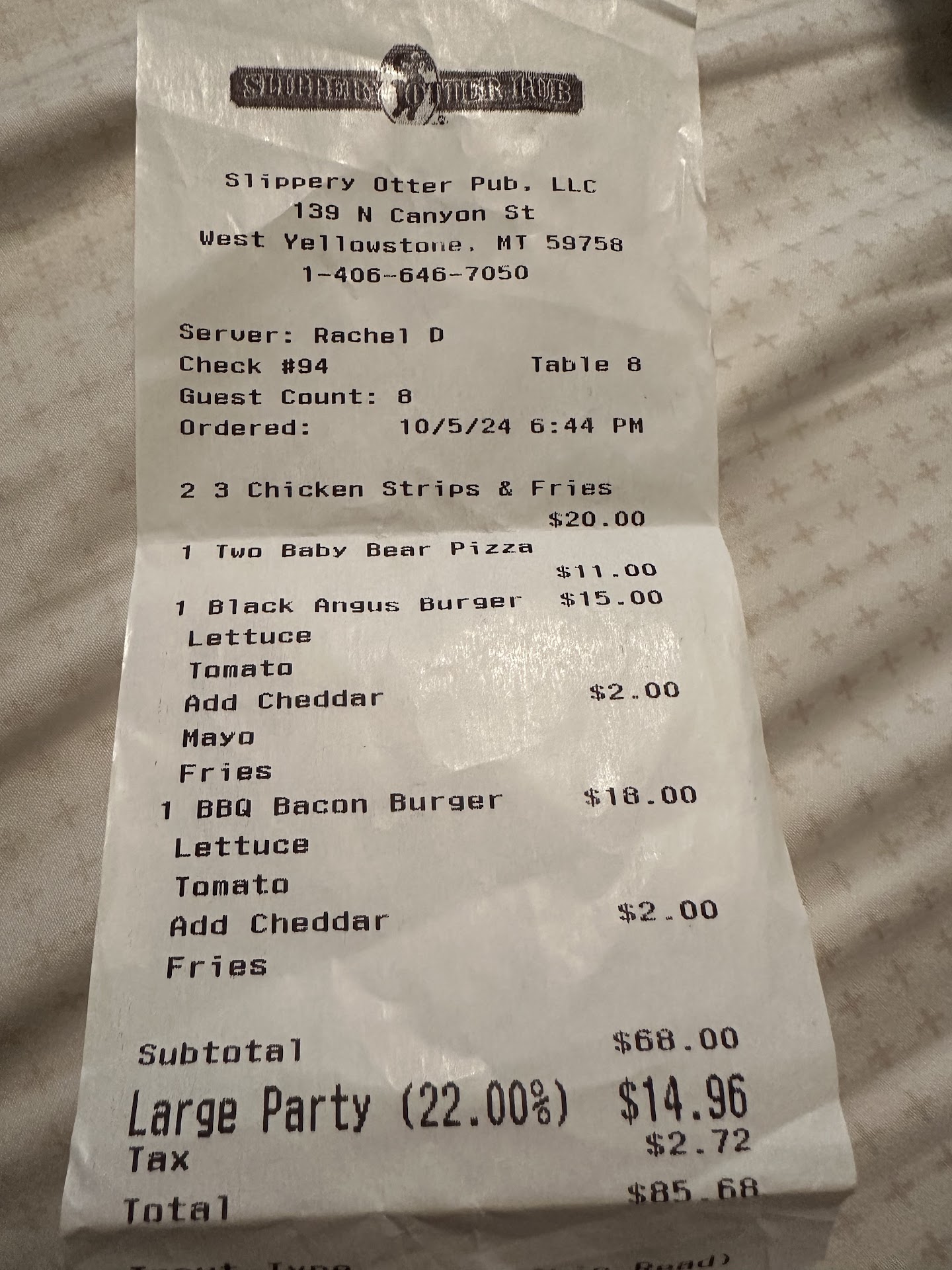 Long story short we didn’t even get to visit with our friends at dinner. The part that makes me upset is they charged us 22% and still wanted a tip for “large party” that they could not even accommodate us. There were 8 of us total, 5 adults and 3 kids that could not even talk during dinner.