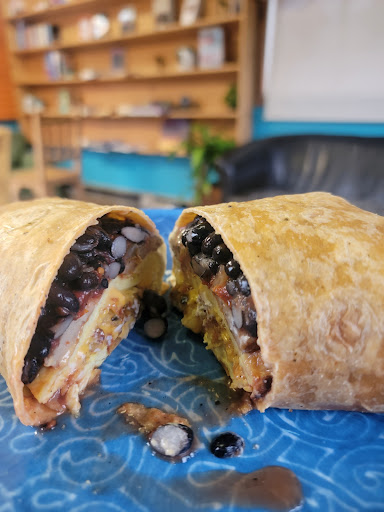 My breakfast burrito was the best I have ever tasted, and I have had versions of breakfast burritos all over. The contents were layered inside the tortilla in a unique way; the egg, cheese, sausage, and black beans were all together in the middle like sandwich contents, but then were wrapped in the shell. It was super easy to use a knife and fork to eat, which I chose over eating it with my hands because I was using my laptop and didn't want my fingers to have food on them.