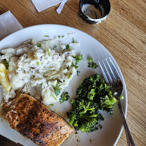 Read moreWhen we entered they said it would be a few minutes, a few people walked in right before us and we all were seated within 5 minutes. The service from the hostess to our waitress was excellent! Unfortunately I cannot remember their names but they were very polite and professional. They took our drink orders immediately after sitting down. We were even waiting on a few more people and as soon as they arrived their drink orders were taken. We went to celebrate my Motherâs birthday, although unfortunately they no longer do anything special for birthdays. Iâm not sure how long itâs been since I havenât been there in quite some time, It was a last minute thing. If I had known I wouldâve brought a small cake or at least a candle to put in an ordered dessert. The food was great! My mother and I ordered the special salmon and shrimp w/frizzled onions, which came with mashed potatoes and broccoli. It was cooked perfectly and everything tasted great. I had a pomegranate margarita (which is red) with a festive green sugared rim that was delicious! My youngest daughter ordered a quesadilla salad. It looked absolutely delicious and was something different, she loved it! My youngest grandson had Mac nâcheese which he gobbled up along with broccoli. My oldest grandson ordered a steak dinner, the larger one and he loved it! One star off for atmosphere due to the place in my opinion needing an update AND very uncomfortable seating for larger parties, there were 6 of us. My family had the same table last time and said that it wasnât very comfortable. It was the most accommodating for our party size. I cannot give an opinion as to whether the smaller booths or separate table and chairs are comfortable. Overall we were very pleased with everything! The service and food more than made up for the slight discomfort with...