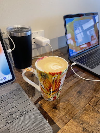 My neighbor and I enjoy meeting here to practice each other’s first language (she’s learning English; I’m learning Portuguese). There’s Wifi for when we need Google Translate and it’s quiet enough to hear each other (but loud enough that we aren’t uncomfortable chatting the entire time). Casual and friendly environment.