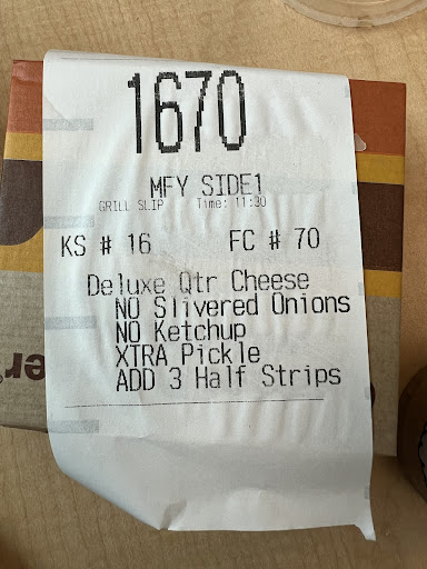 Read moreI went inside, placed my order and then returned home. Upon inspecting my food, I saw something that looked like a bite size piece missing from the patty! I returned the food to the store and got a hold of the manager. He told me that it was from the food sticking on the fryer and the spatula caused that piece to break off. If that’s what happened, then they should inspect the food before serving it to customers. I include pictures here to show the issue and what it’s supposed to look like. I suppose what really happened will be a mystery.