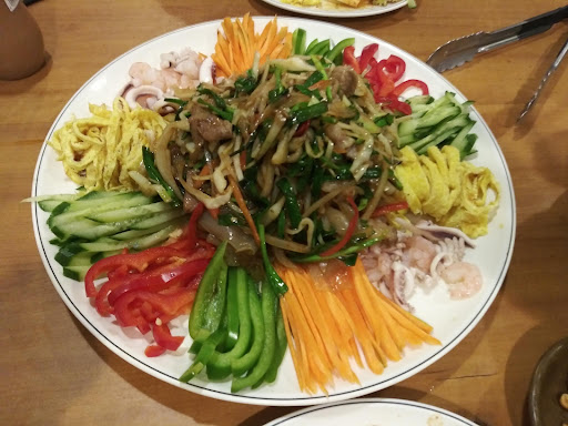 I ordered the Kang Jang Pi. It says for 2, but it can easily feed 4. The quality of the noodles in the Kang Jang Pi could have been higher given the price that you pay for it. Our appetizer was the small Pan Fried Dumpling. It was probably the best part of the meal. I also ordered their Bi Bim Bap. It was good but nothing special, kind of plain. What I really did like was the 8 small side dishes of Kimchi that is traditionally served at Korean restaurants. I could have just ate those side dishes and been happy.
