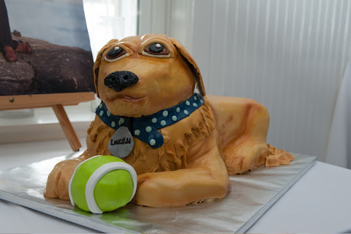 My wife called Jessica three weeks before the wedding and asked if she could create a cake of our dog Lincoln. He wasn't going to be in the wedding but we wanted him to be there in spirit so she got me a Groom's cake and it turned out awesome! She sent her a couple pictures and Jessica went to work. Everyone thought it was awesome! We ate this cake for our 4th of July party and it tasted great a month later.
