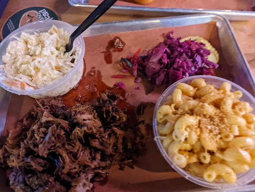 Read moreI was excited to try the bbq here but ended up not loving it. They state the bbq is smoked on site but the meat tasted like it was seasoned with liquid smoke. A low slow bbq is tender and the smoke flavor is infused, this was not the case here. The pulled pork came in a puddle of greasy drippings which probably means it was convection roasted, pulled, and served with the drippings. The slaw was ok. The mini cornbread was dry and cold. The bbq sauces were good, but because the smoke flavoring was so strong and salty, they really just added a layer of flavor that didn't compliment the dish. The Mac and...