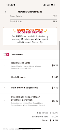 Three times now I have ordered from the granite street location using the mobile app. All three times different coworkers have gone to retrieve my order as well as other crew members orders from this store. Each time I’ve gotten my order the cup is only three quarters filled, I get shorted quantities of items I ordered or the order is messed up In one way or another. For example today I ordered 2 pc bagel bites, a black pepper bacon egg and cheese on a croissant, 6pc hash brown, and a large matcha. Upon receiving my order a quarter of the cup was empty, the 6 pc hash brown was now apparently a 4pc, the bagel bites were no where to be found (they never put them in the bag), and my sandwich essentially had no top to it and there was remnants of it in the bottom of the bag. Super unprofessional and quite frankly ridiculous you pay out the rear for coffee these days anyway and then you get your order and on multiple occasions it’s incorrect, incomplete, and just overall frustrating. My order today cost me $17.45 and half of it wasn’t even present and the fact that this isn’t even the first or second time this or something very similar to this has happened is absolutely ridiculous. I get it the staff aren’t paid much, usually don’t want to be working at Dunkin Donuts, and most often then not are not happy as a former employee (at 17 y/o) I know what it’s like to sit there and be berated all day and have angry people upset with you for stuff that most of the time you personally didn’t even do. I’m a reasonable person but the consistent and seemingly intentional mishaps are getting...