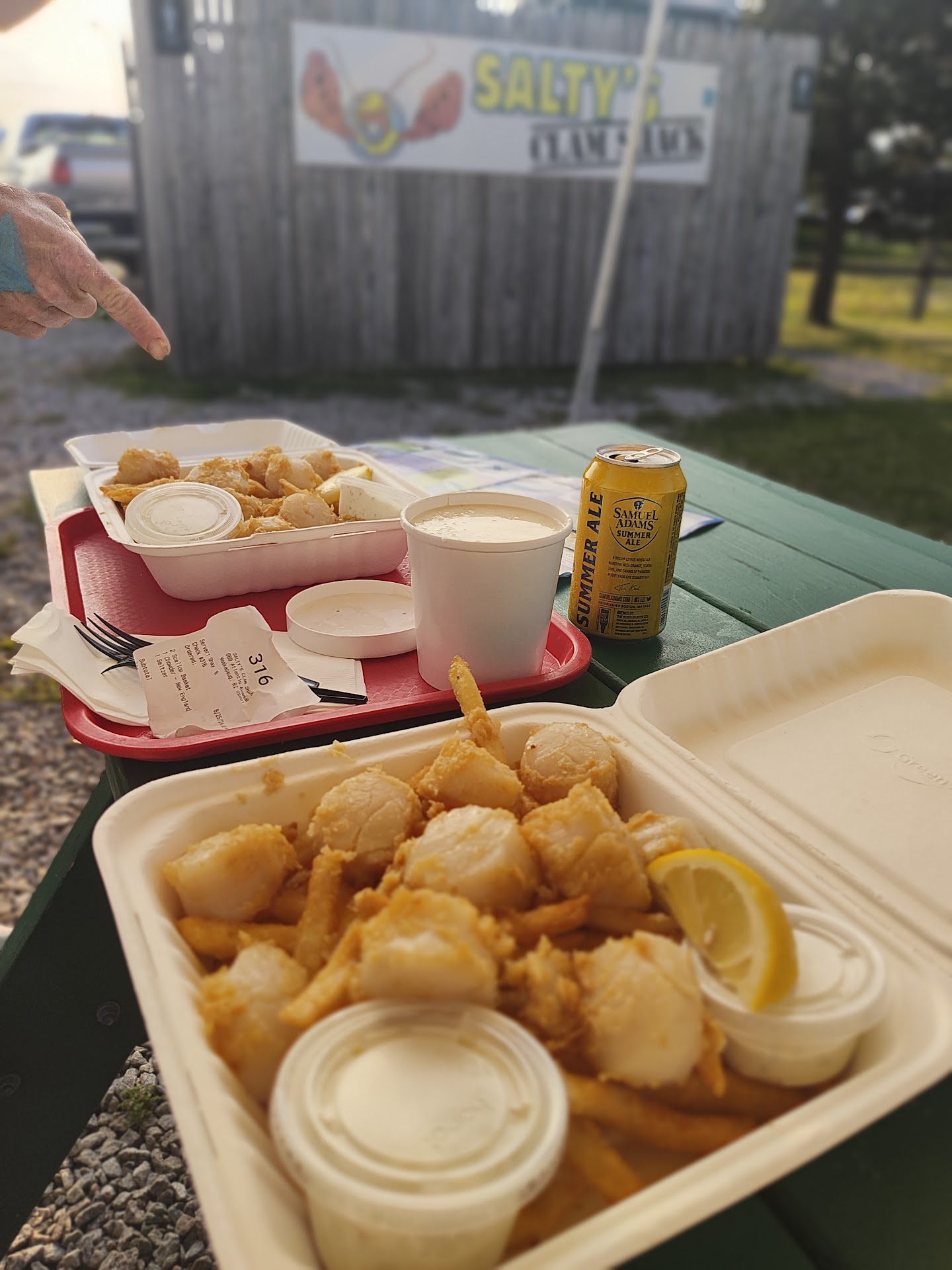 Read moreCame here after a fun day dancing at Tikki Beach! We both ordered the scallop basket and the clam chowder. When the order arrived we were very surprised that these were SEA scallops, they were HUGE and we were given so many per order! We probably could have ordered one and had been happy sharing, but the leftovers reheated in the air fryer the next day with some extra seasoning and lemon juice were so good!