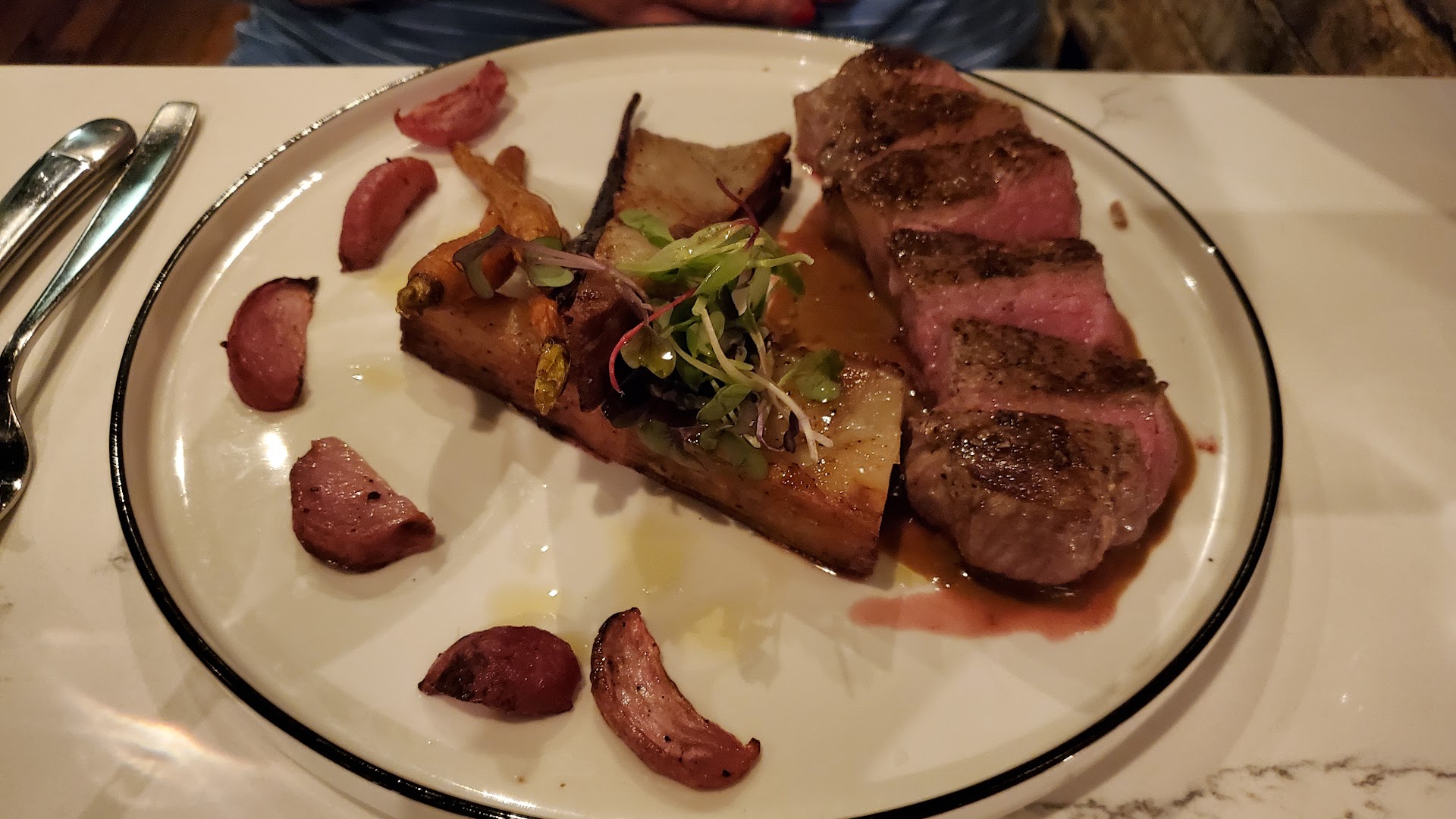 Read moreHello all, sunday the 10th of April i took my wife out to eat for our anniversary, i was looking for some place nice that had gluten free options as well as a more upscale attmostpher. We put on our nicer attire, and hit downtown westerly. First impression, walk through these beautiful wooden doors to welcoming faces and the nicest 2 ladies ready to seat you. Low lighting and dark calm relaxing environment already very nice. If you have the option of sitting near that indoor fireplace (gas) do it. What an added bonus to such a lovely night. Now for what you all probably wanted to know.. Words could not truely describe the flavors of the food that we got. Hands down the best gluten free food I've ever tasted let alone had at a resurant. The pasta dish I had (gf pasta) was exceptional what a lovely blend of flavor with the basil. And kielbasa wow. What a great meal. If you arnt drooling just yet heres what my wife got. And yes also gf.. this bacon wrapped meatloaf was honestly to die for, with the side of diced potatoes and eggplant was surprisingly delicious. Oh and how could I forget we also got apps. And those can not go with out mention. BACON infused deviled eggs. With this glaze on the bacon that was just out of this world. I could not think of a single reason between staff and cooks and ambiance why this restaurant shouldn't be your next stop. You will be...