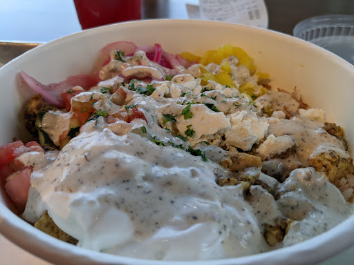 Read moreFound this place on Google. It's abit see if you are just driving by...but I am glad I followed my GPS because I love Greek food! Interior was brightly lit, modern, clean and reminded me abit of a typical Chipotle....employee was friendly and explained how things work. I got to choose a base (4 or 5 options), a protein (4 options - I'd list them but am not sure I remember all four correctly), and then a variety of toppings and sauces. I chose to do half of one protein and half of another. No extra upcharge to do that. Had some Tzatzki sauce and some of their house sauce as well to top everything off. Waited till I got home to eat....and oh my! Delicious! Wish there was one close to where I work.