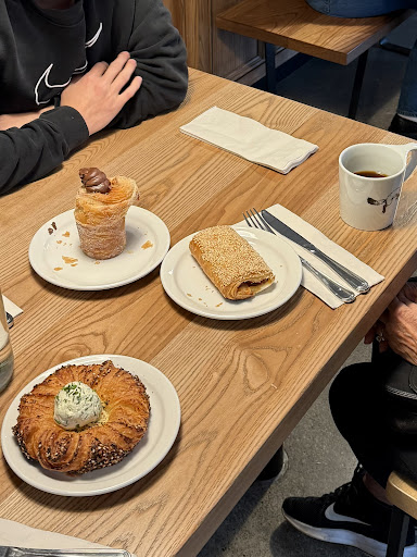 I love the Fox in the Snows around the city, so I had to give this one a try as well! I was super excited to see the new space, it was beautiful! But the flow of the cafe definitely still needs some work. We ordered 3 pastries with an employee a few people away from the register (which were delicious as always!), but then to my surprise, she asked for my drink orders too, without being at a computer. We then waited for the 3 people in front of me to check out, then the employee repeated my order incorrectly to the cashier. I made sure to correct them by saying my original drink order again. But unfortunately, my hot latte was lukewarm, and my partners latte had to get remade 3 times, and they still got the milk wrong the last time, and we ended up just taking it since we had waited so long. I am only writing this review so because I love Fox in the Snow and I want this location to succeed, but they definitely need some time perfecting their work...