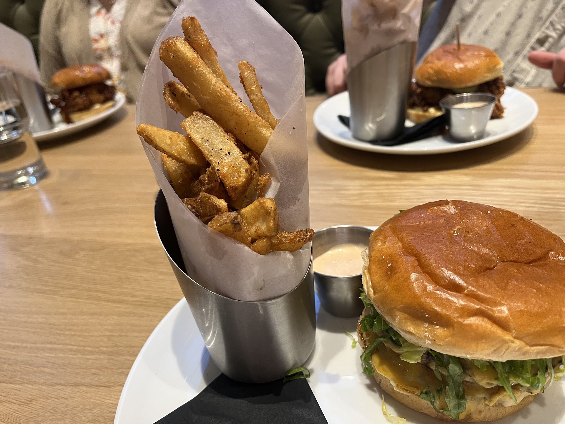 Read moreGreat first visit, the staff was welcoming, service was great, Jarad was attentive and had good suggestions. I had the burger which was very good, basic enough but lots of flavors with the homemade pickles and sauce. My wife and son had the chicken sandwich which was very good , nice Korean type sauce and well breaded and moist chicken. The fries were good as well as the fry sauce. The star of the show was the whiskey. While I am a novice bourbon guy but love Jack, I was questioning the blended Whiskey. I was impressed, we had the Whiskey Wars, Barrel Proof and a Smoked Old Fashioned and all were spectacular. Now I see why they won the awards, I am now a blended whiskey fan. Overall perfect dinner, especially since it was the third night they were open, kudos to the staff for doing so, nice to have this in uptown and looking forward to returning.