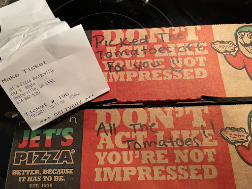 My rating is only for our latest order which was one bad experience, and not our usual experience. That's the only time we've been unhappy with Jets. Our relatives from Michigan introduced us to Jets and we've been ordering from them exclusively for a few years. Our entire family really enjoys Jets Pizza and we always order it when we have a big crowd over.