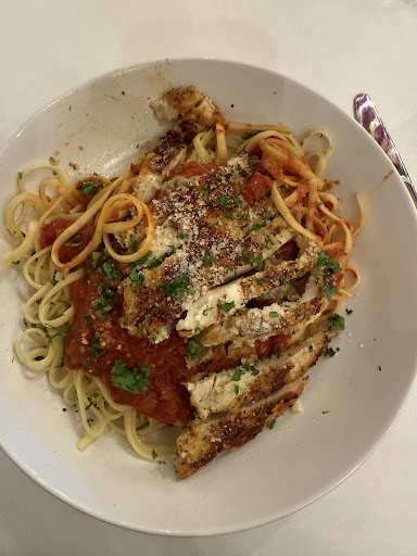 My wife had the salmon with rice and absolutely loved it—she said it’s a dish she’ll crave again. I went with the Parmesan-crusted chicken and linguine, and everything was cooked perfectly. The sauce was flavorful without being overly sweet.
