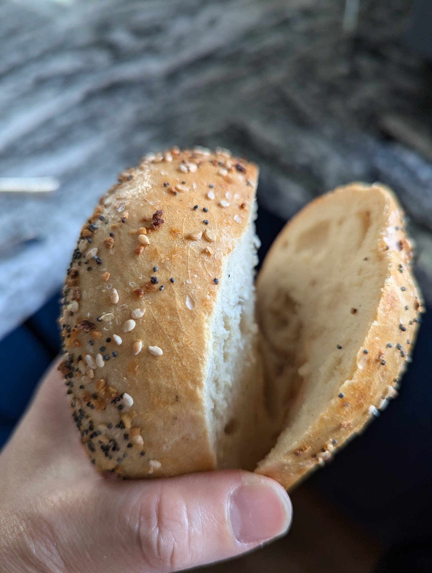 These are easily as good as any bagel you’ll find in NYC or on Long Island (and getting bagels and pizza are my two must dos any time I’m back home, so let’s just say I’m a bagel expert). I almost wonder if they are importing NY water, since people say that’s why the bagels there are so good! A real NY bagel is all about the texture — a chewy inside and the perfect outer crust that makes a distinct sound when it’s done just right (and that you can usually only come close to getting by toasting your average non-NY bagel, and even then it’s not quite right).