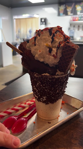 My family and I are in town for a lacrosse tournament (June 28th) and were looking for a place to get ice cream. With all the big chains around (DQ, Culver’s, etc) we decided to support a small business. We arrived an hour before closing with customers still plentiful. We researched online and found elaborate milkshakes that my 4 kids were all very excited for. We walked up and attempted to order one and were told “we can’t make that” by a young lady. I assumed there was a problem with something so it was no bother, a little disappointed, but we got cones and all was well. I walked outside and someone was eating one of the milkshakes. I walked in and asked “why is it you could not make the milkshake”. To which she said “thats what my manager told me”. The other gentleman was great. He said he had no idea what she was talking about and even offered to make me one. The girl asked if I wanted to speak to the manager, and I said sure, since you are offering. The manager came out and said she had no idea what she is talking about, and again offered to make us a shake for free, to which I declined (4 kids with double ice cream can never turn out well).