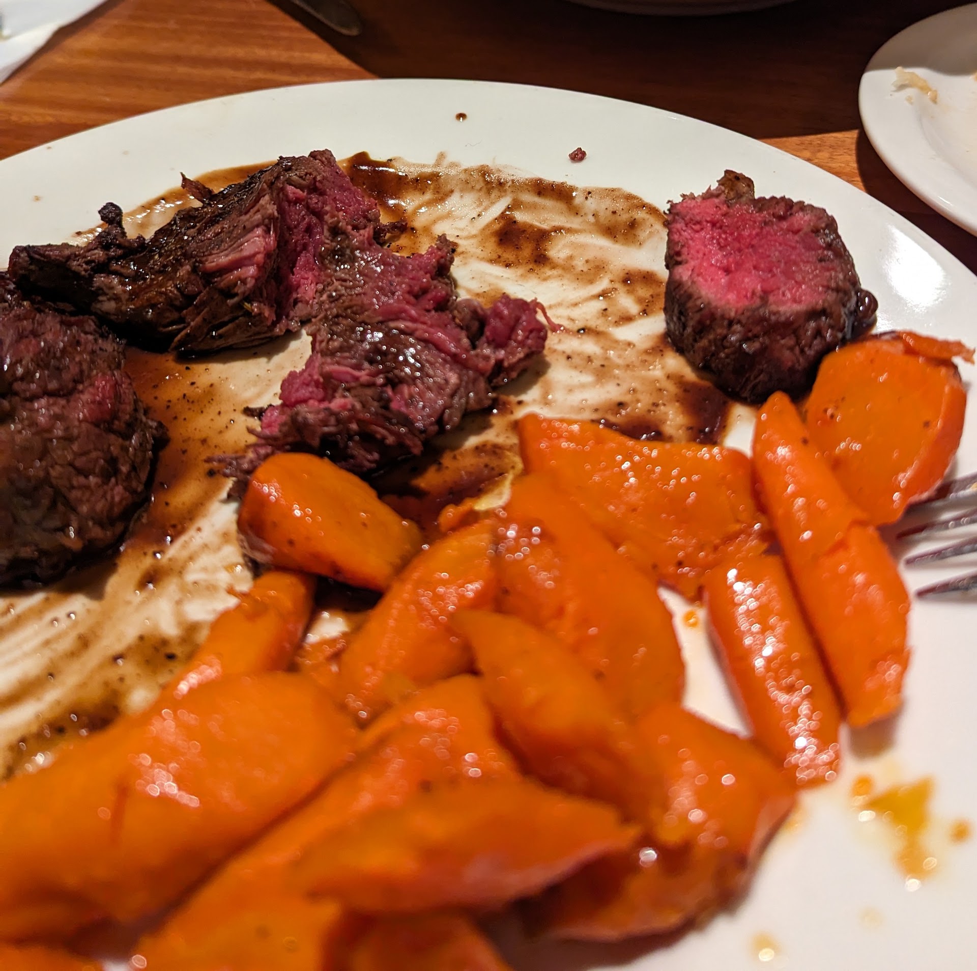 Read moreMy wife and I go here probably once a month and have never had an issue. This past Sunday we went for dinner like we normally do. We showed up 15 minutes early for our 6pm reservation. After we were seated we ordered our apps, salad and dinner as well as a cocktail. We watched two other tables come, order, and eat before we got our food. I finally got my app and salad and I asked the waitress what the issue was and how these other tables had already finished their food and left in the time we waited. At this point it had been an hour since we got there with no main dishes out. I finally told my waitress I was over it and we needed to leave as we had a one year old. I asked her what the hold up was and she blamed it on the kitchen. At this point I should have asked to talk to the manager but I thought the waitress would take care of it. The waitress btw, only stopped at our table twice in this one hour wait btw. Finally, I said move it to a to go order cause our one year old was going to start loosing her mind since she needed to eat. After moving it to a to go order it still took another ten minutes. Iâm almost positive our waitress forgot to put our order in as I watched two other tables after the first come, order, and eat and we still had no food. I canât remember the waitress name but I remember she had face tattoos. After all this she just said sorry and to ask for a free dessert next time we come in⊠if it wasnât for my kid starting to get upset I would have just taken the time to speak with the manager. After all this we get home to missing food on a $140 billâŠwe buy the gift cards at Costco when theyâre on sale and still have $400 left. I think after this, Iâll just give them away for Christmas. I will say, the steak my wife...