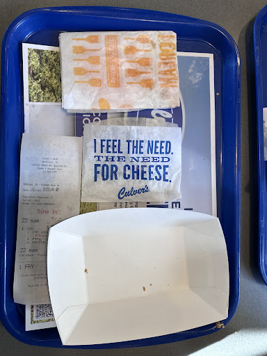 Read moreWe already knew we like Culver's but this was our first time to eat at the new location in Westfield, IN. We are quite happy that there is finally a Culver's closer to home. We arrived around 7pm on Saturday evening. The restaurant was packed, but no wait at the registers. The order taker was very friendly and knowledgeable. Food came quickly. Everything was a delight. My partner is gluten free and got a gluten free mushroom & swiss burger. I got a double burger with the works--by whatever name they attribute to a double with the works. Everything was hot and fresh and came exactly as we have gotten at other Culver locations. They had plenty of staff and were keeping up with cleaning tables. If I could complain about anything it would be FOX news on the TV in the dining area--not that I don't like FOX, but that I really just don't want to hear or see the political blathering. The other TV had sports which we don't want to watch either. Surely there are channels that aren't sports or news. Still, they get five stars for burgers and fries that are better than the other fast...