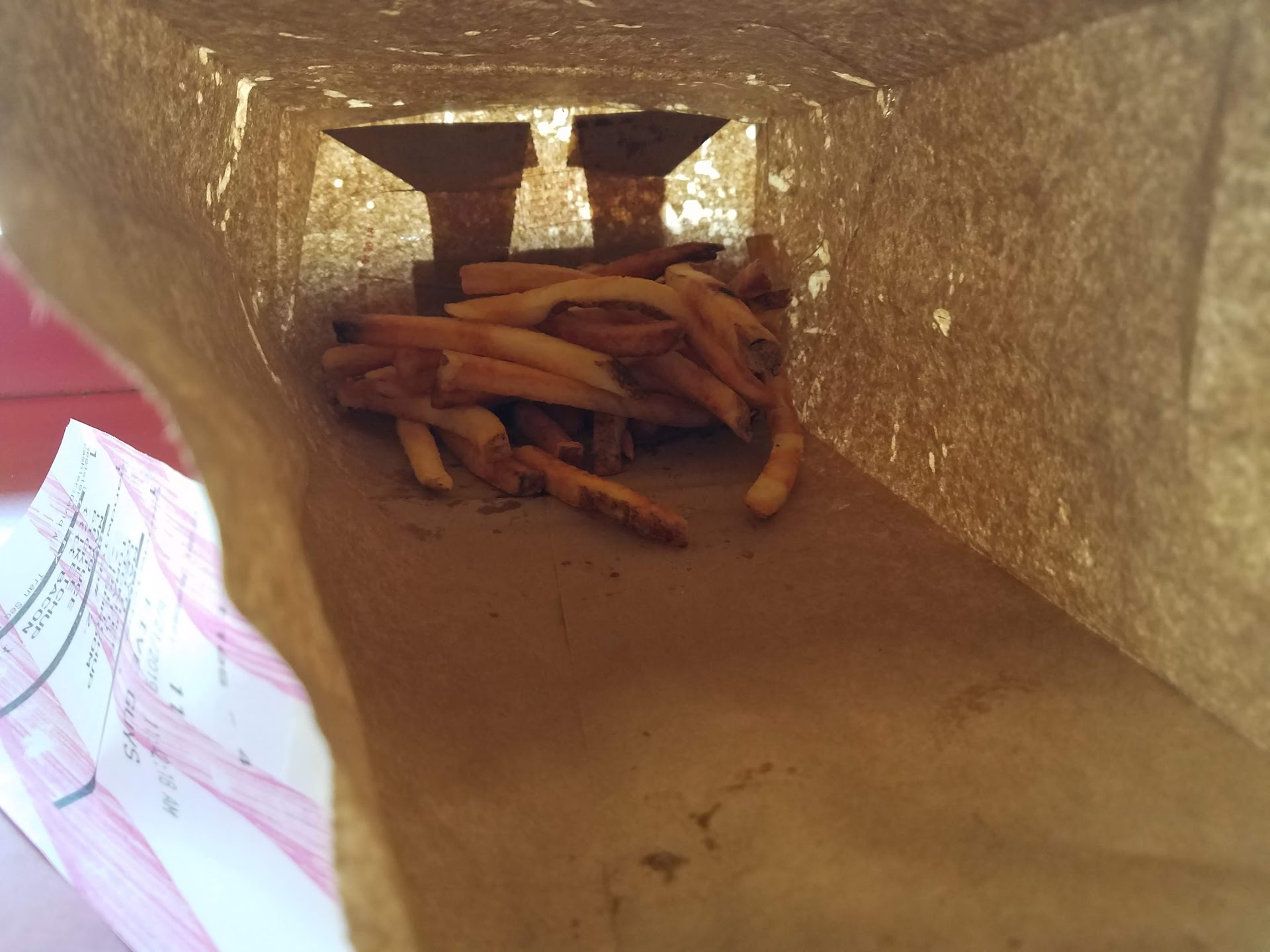 Read moreDecent hamburger for fast food. Reminded me of a Wendy's hamburger. The fries are the kind with the skins still on them, they're ok. They give you 3X's as much fries than you order. They pack the fry container, then through a boatload more in your bag, like more fries makes things better lol. In other words, only order a small fry. When he told me the total, $14+ for a bacon w/cheese, med fry (learned my lesson), and a med drink, I had to let it sink in a little while he stared at me like I was mentally challenged. $14 dollars for something that reminded me of a $7 #2 combo from Wendy's. At...
