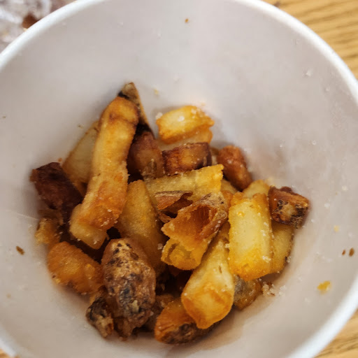 I think they know how much we enjoy it no matter what size fry you add to your order they will put that in a cup, and then on top of that they throw a generous portion of additional fries in the bag. I think they know I’m there today to splurge and want to help me enjoy my experience. I am and they do. Enjoy, just...
