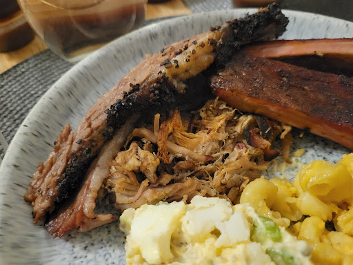 Don’t skip the sides, either — the baked beans are hearty and full of depth, and everything from the mac and cheese to the slaw is seasoned to perfection. Each dish complements the meats beautifully.
