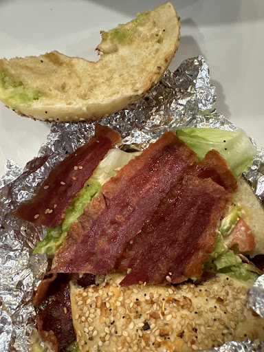 Update: 7/1 I see a response from the owner below and exactly! In the picture of the bacon below, you can see it has way too much fat on the sides to be turkey bacon. I’ve ordered the sandwich from other Manhattan bagel locations, and the bacon below is definitely pork. Turkey bacon has significantly less fat on the sides and doesn’t ripple on the sides due to low fat content. The bacon below is rippled. I even took a bite out of it and spit it back up which is why it’s mangled in the photo. It’s disheartening to see that this establishment is very bent on gaslighting customers instead of just saying sorry....