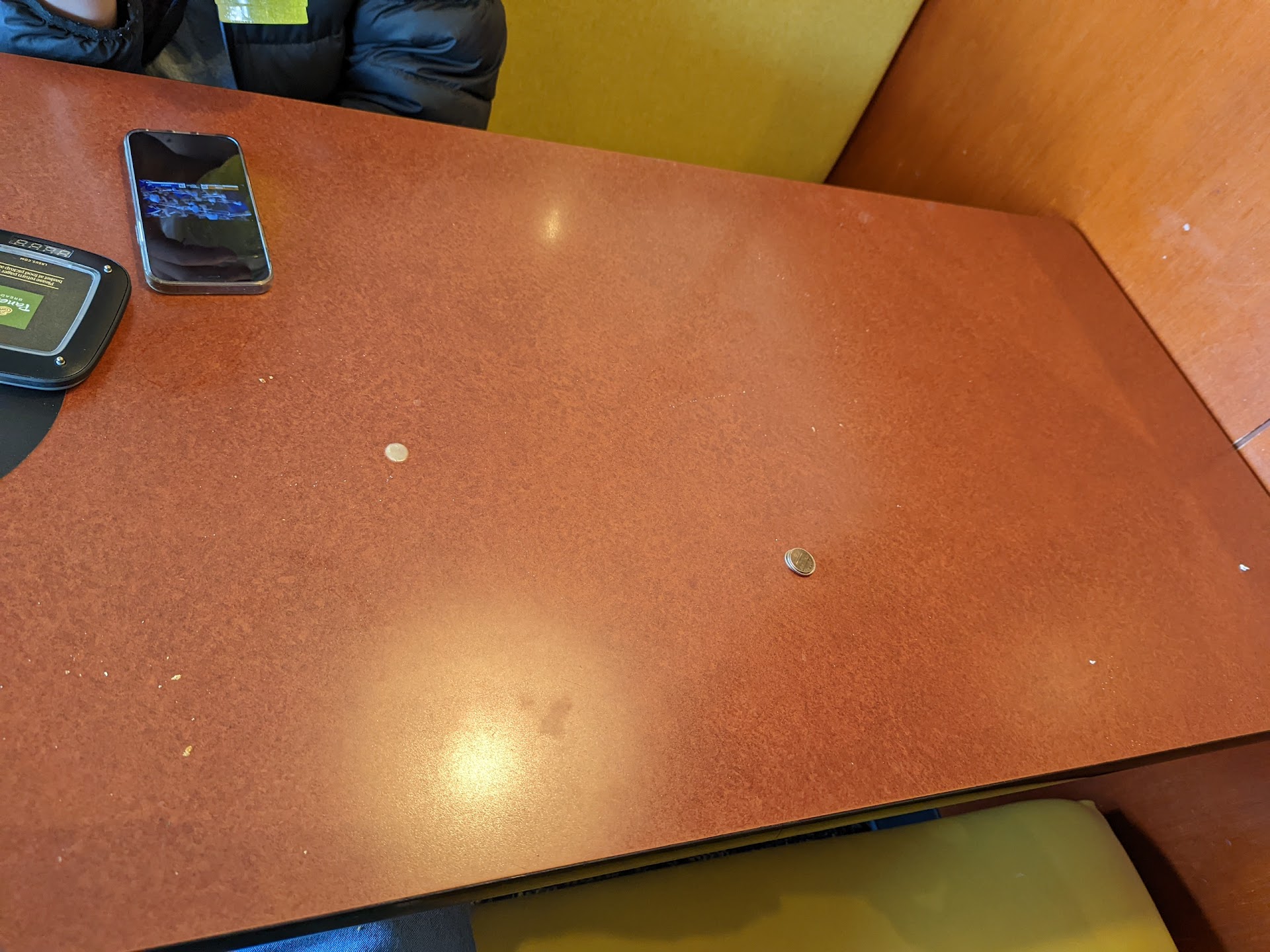 I approached the cashier about the cleanliness of the restaurant and she said oh sorry about that, we will get someone out there to clean it right away; several minutes later I saw her chit-chatting with her friends in the dining room, and nothing was being done, she was chatting with her friends for at least 10 to 15 minutes. We had to sit at a dirty table to eat. We were there for about 35 minutes after I first approached the cashier, nobody ever came out to clean anything. I then spoke to the manager who was apologetic but did not appear to be very concerned with the appearance of the restaurant or my disappointed. I think a lot of this has to do with the age of the employees and the clientele, all of which are either teenagers or in their early twenties, including the manager.