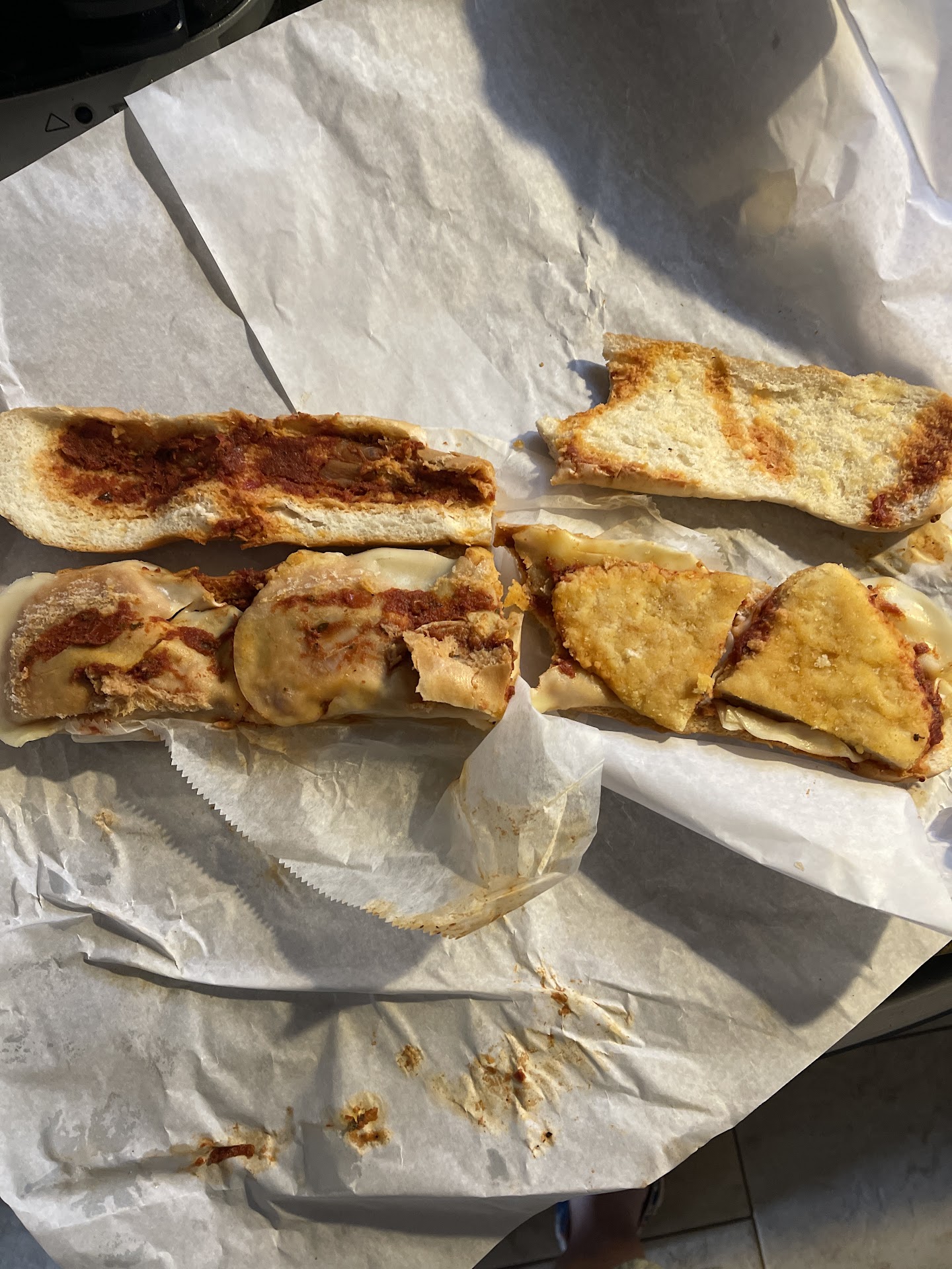 I got chicken cutlet with sauce and cheese. At first glance they hadnāt offered to heat the grinder up to melt the cheese and warm the bread. I said to myself āmust be an oversight.ā I open the sandwich looking to see how they made their chicken cutlets and I was blown away to the fact they use commercial frozen chicken cutlet patties found at restaurant depot.