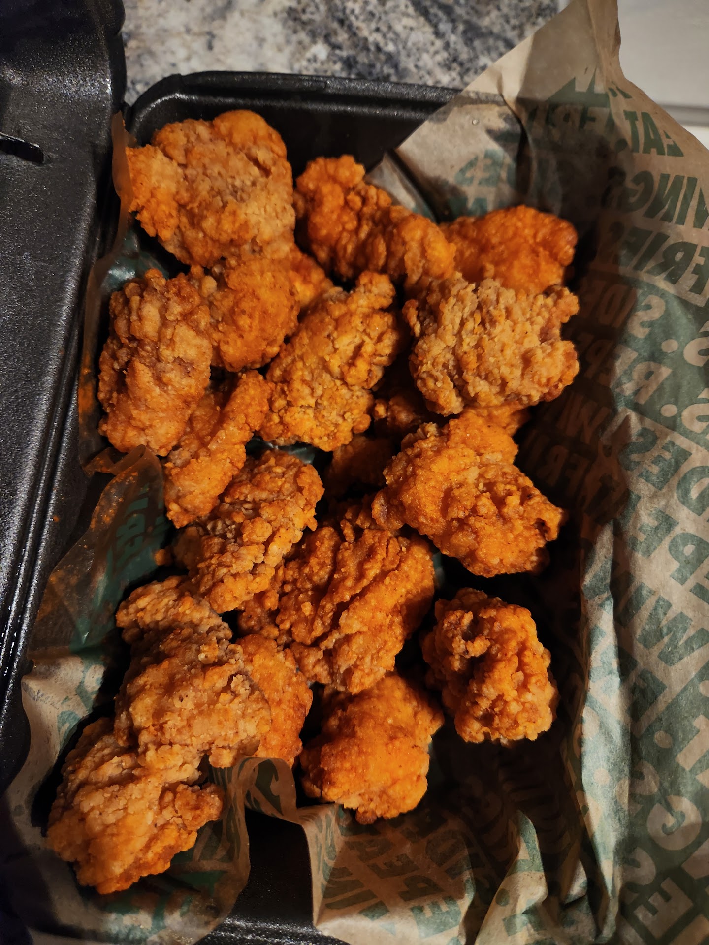 Read moreSo this was our 3rd time at this Wingstop. I miss living downtown for very few reasons and the wingstop downtown is one of them. The chicken was cooked, but this is the 3rd time we've ordered, and there was basically the lightest coating of sauce there could be. I don't like complaining to managers. I'd rather just give a few times to see if this is how it is. So we won't be back and I can't recommend them because this is how they always look. It seems to be a usual complaint at several surrounding wingstops too. So saying something probably wouldn't help anyway and just makes me uncomfortable. If your food regularly comes out this poorly them saying something is just futile. So if you like plain boneless wings hit this place up. If you have to order wet wings or extra sauce to be sauced wings than...