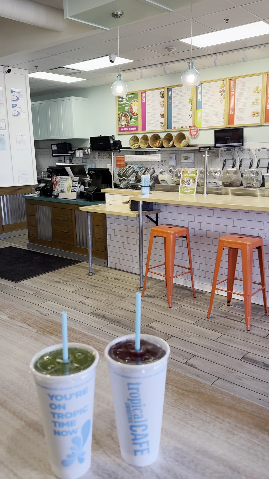 Read moreI placed a mobile order for dine in about 10 minutes before arriving. Once I parked the car I clicked the "I'm here" button in the App. When we walked in, one staff member brought the smoothies and food to our table. How efficient is that. Same good food and good flavor. Lots of seats and tables for this...