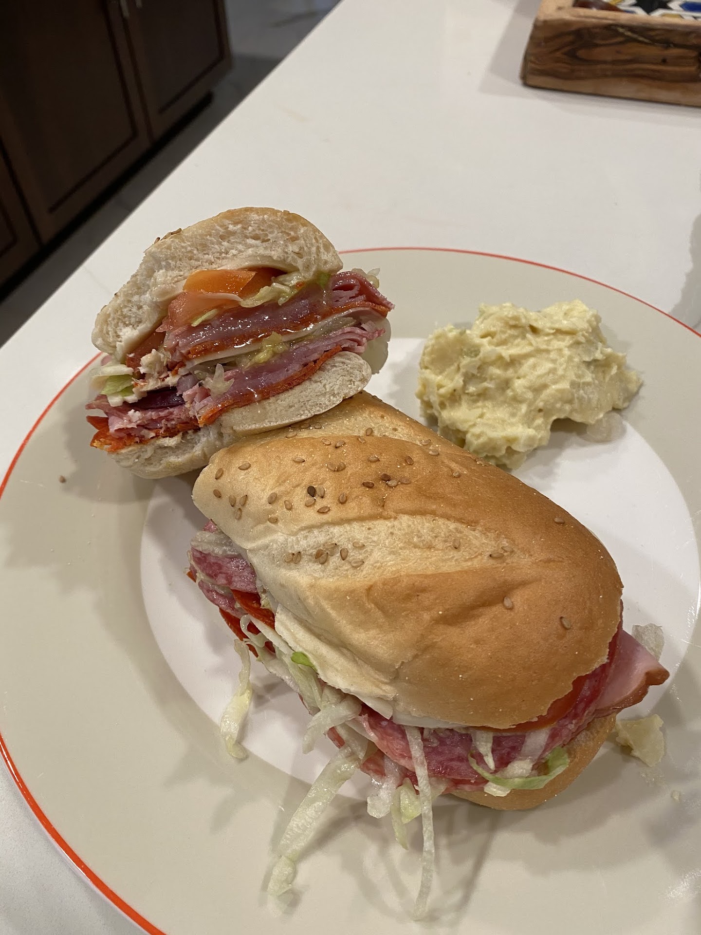 I had high hopes for D'Italia but they really fell short. This review is based only on my order which contained a salad and whit pizza slice. In their favor, both items were huge. If I liked them, would have been a great value for the money. Salad average. Iceberg lettuce, 4 cherry tomatoes halved, shredded carrots, chickpeas, and shredded mozzarella. Nothing fancy but huge, could have fed 3.