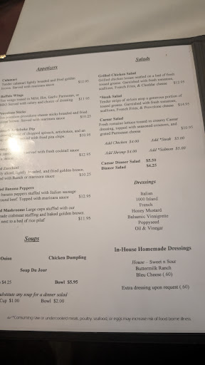 Read moreIf you want good food do not come here If you want fast service do not come here If you want food that is on the menu do not come here. This place is BAD to say the least. I wanted to order prime rib and was told they were all out so I ordered chicken wings 10 for $8.95 After about 40 minutes I get them and 2 orders and there is only 8 per order so I asked about this and was told the prices changed about 2 years ago and they dont have new menus. I asked why the prices online are so different from this old menu and was told they havent updated the website in many years. Interior is old the help is rude and do not care what they are doing the food is a 50/50 if they even have it and to be honest nothing we had at our table was any good what so ever and for the love of god stay far away from the soup if you do dear to go to this place as the amount of salt in it will kill a...