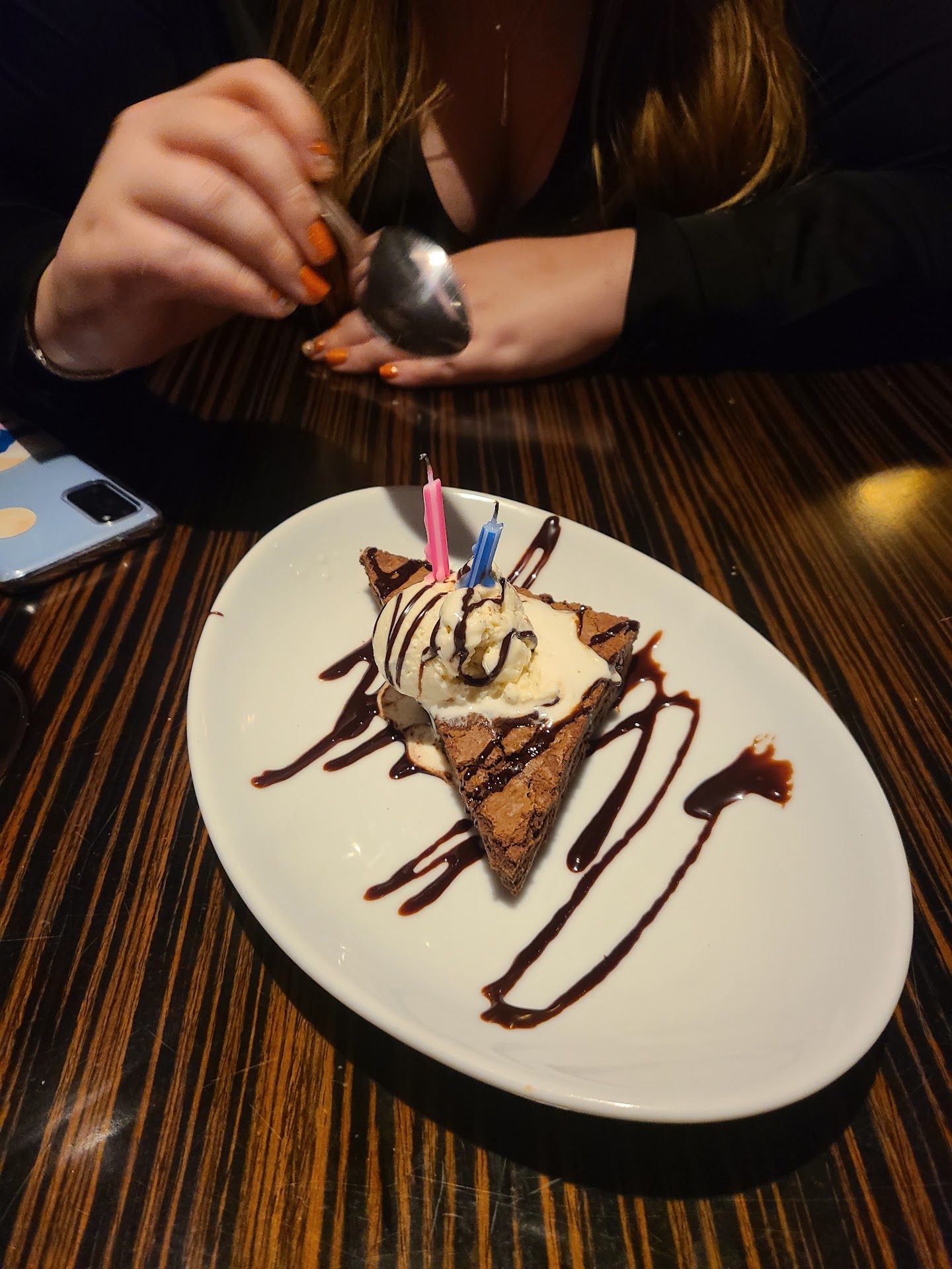 Main course wise I ordered steak medium rare and my fiancé got medium well. Her steak ended up being medium rare to rare and was somehow more pink than mine. I understand a thick sirloin is not an easy steak to cook because of its thickness but whoever is cooking back there on Saturday nights should know how to feel a steak and know when it’s done enough.
