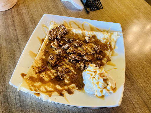 Cannot say enough good things about this place-absolute hidden gem of a breakfast place! I ordered the strawberry cream cheese crepe and my partner ordered the bananas foster-both were absolutely delicious (you can tell from the very first bite that they use quality ingredients-for example, my crepe had real strawberries instead of canned filling and they real whipped cream on their crepes) and the presentation was picturesque. Mine was so rich I took the rest to go, and worth every bite. Also ordered their iced chocolate drink and instead of something basic, was served dessert in a cup-and it was worth every sip! 12/10 will absolutely come back!