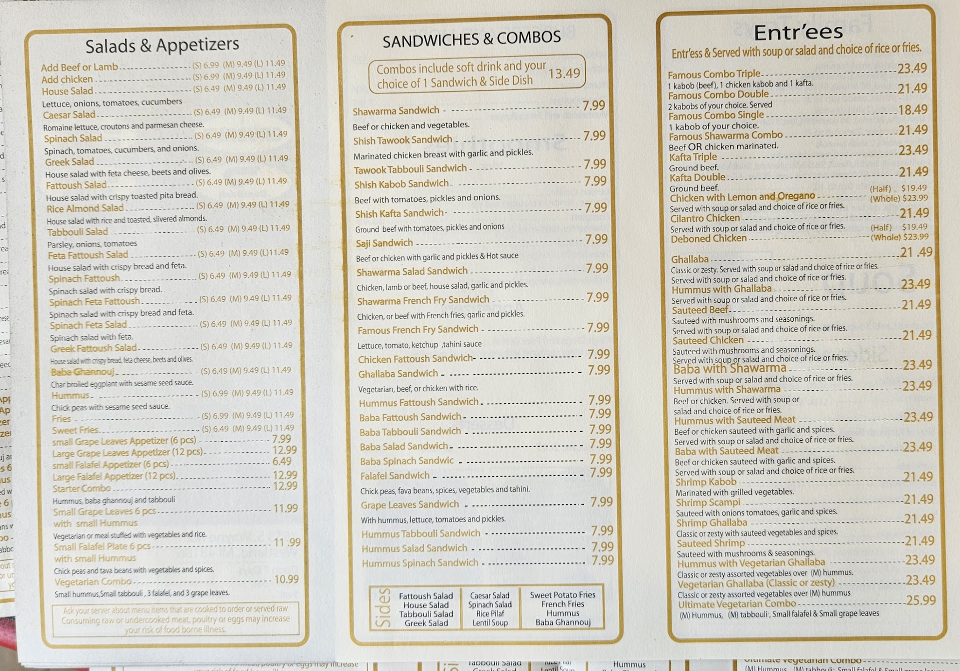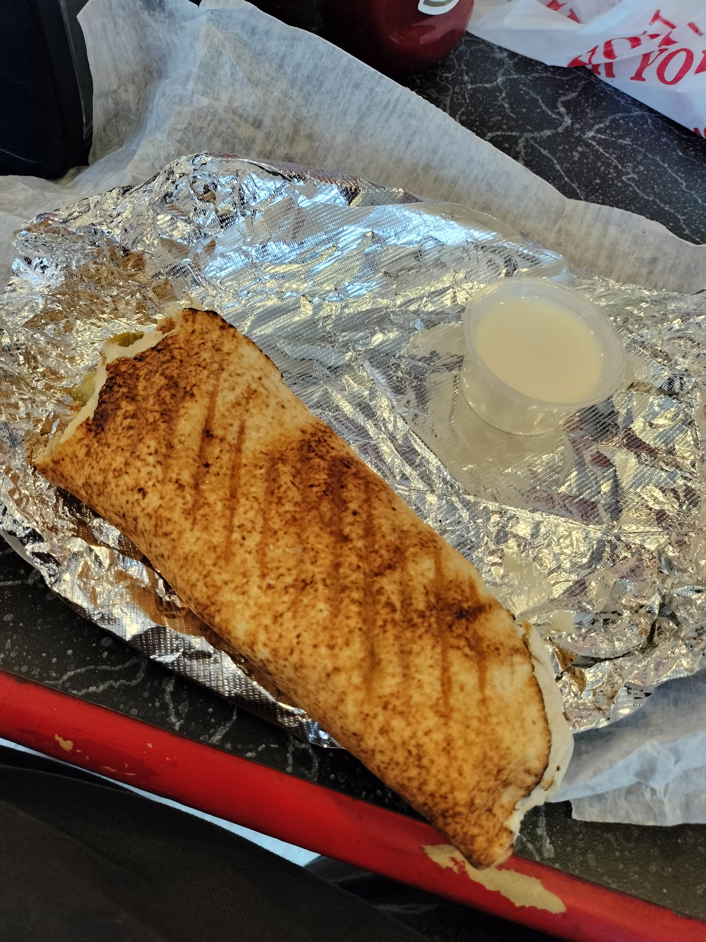 Read moreI have had Mediterranean from several places. This is the worst. The order was said to be done in 20 minutes. My friend had to sit at the establishment 25 minutes after the order should have been done. The fatush salad was nothing but a tossed salad with onions and ranch dressing. You dont put ranch on a real fatush salad. The grape leaves were thin and full of rice; couldn't tell there was meat. They were cold, and one side was dry and hard like they'd been sitting out. Shwarma wrap was cold and had barely any pickle. The garlic sauce was globbed on the ends and not spread through the whole thing, which was disappointing. The pickle and garlic sauce is what make a shwarma wrap so good! Mediterranean is generally a little higher prices so I very seldom get it. I was so looking forward to this occasion, and I was very disappointed. I wish I had paid the higher price and drove a...
