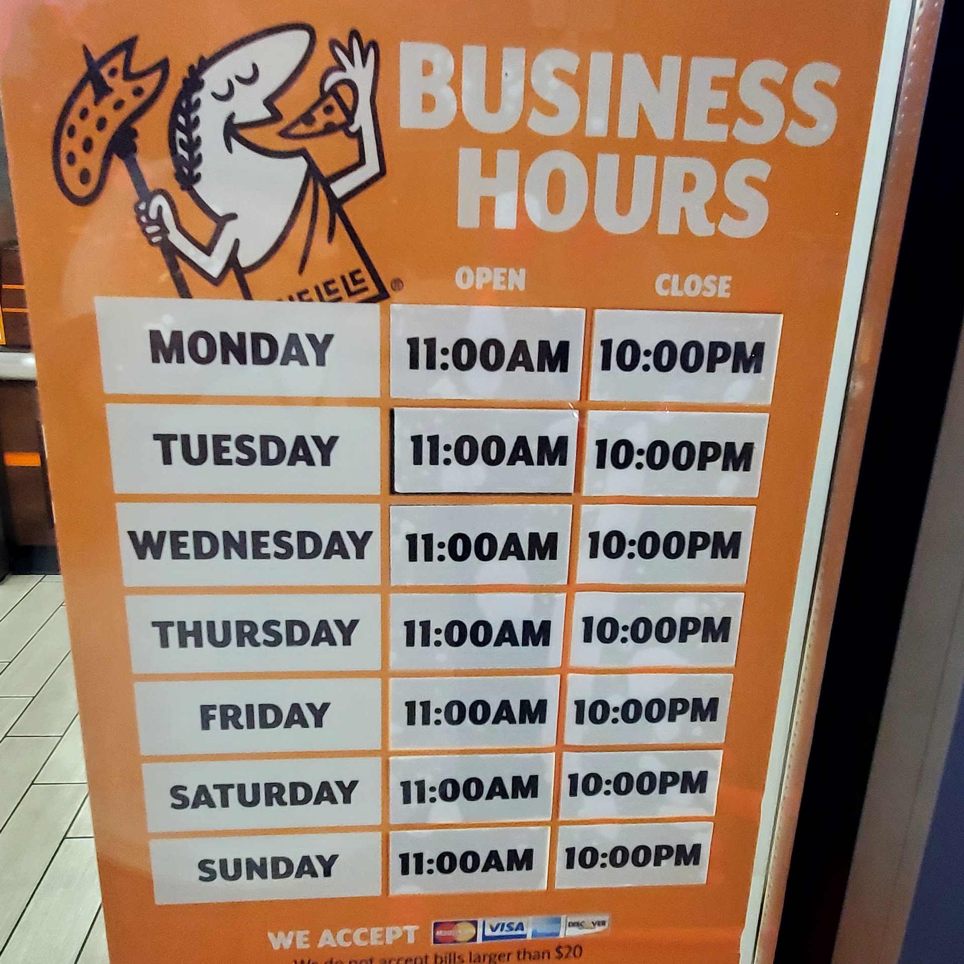 Read moreFood was ok but cold . I placed an order online and went to the store at time I was told. First they told me no cash because the manager wasn't there and couldn't take cash. So either can't trust the staff or the manager doesn't believe in it's staff. After waiting in the store for 40 minutes I got my food. During this I watch a lady look for people's orders by opening every box . Staff wasn't even placing the orders with tickets just tossing it along a counter not the heater they usually store them in. Back staff was moving slow but a few. One kid was on phone few times. The girl at front desk seemed new and nice but scared of people. They had lost 7 customers while I sat there. We have had issues there before but not this bad and usually food was perfect. They found my other 2 pizzas on the counter. Boxes cold. I think this is because there was no manager and seems like this is a continuous problem. Owner or manager should show more respect to a company name they purchased.It was busy being day after Christmas as majority of management would know it would be a busy day . So they should of been working themselves or made sure had a staff that could...