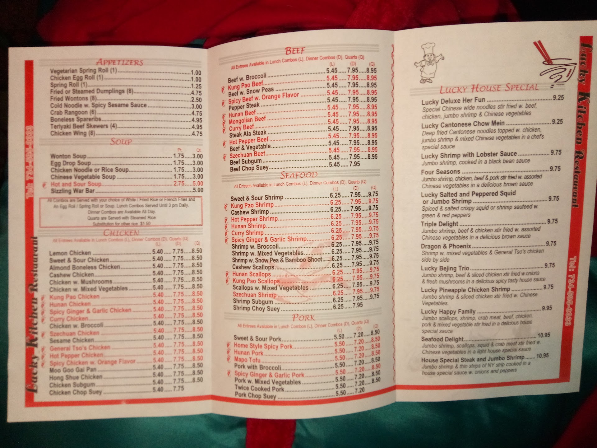 The prices at Lucky Kitchen are affordable and well within reason. The food is of high quality and the taste is superb. I enjoy their beef, chicken, pork and especially their seafood dinners. The scallops I had recently were delicious.