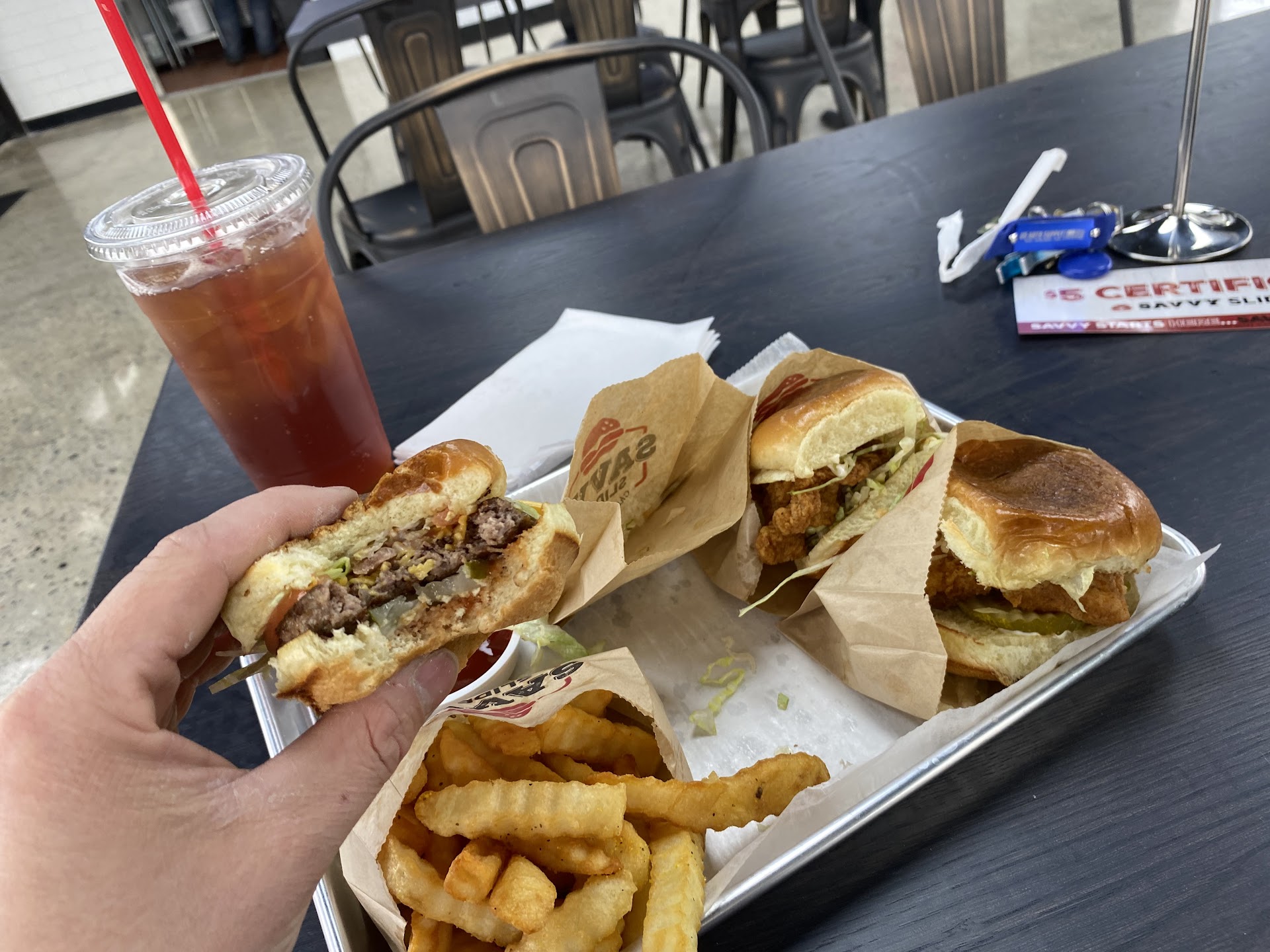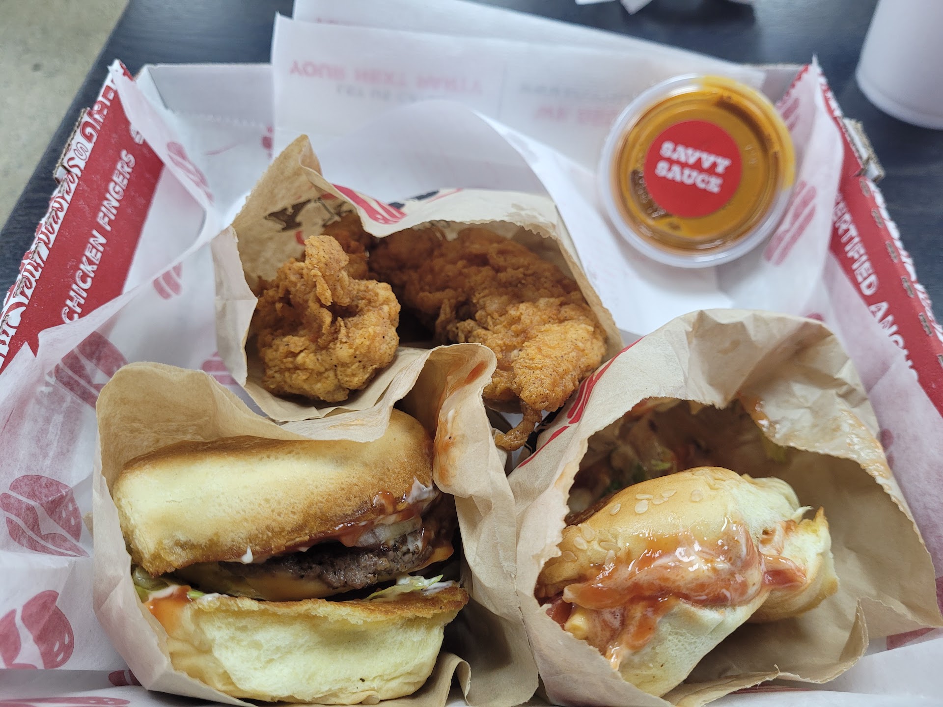 Ā Ā Ā Read moreSo our family saw this restaurant on a commercial and felt like trying something new. I went online and placed our order which costed over $40 ( we ordered a chicken strip combo, side order of 4 piece chicken strip, and 2 cheeseburer combos, one of them with extra patties). My husband went to pick the order up and when he got home, him and my daughter's combo was not appetizing at all. Not to mention that my husband's "cheeseburger with an extra patty on both " had ABSOUTELY NO HAMBURGER INSIDE. They had the fried egg and bacon on them but NO HAMBURGER at all. My chicken was ok but nothing to brag about. If I could give them 1/2 of a star then I definitely would. SO...