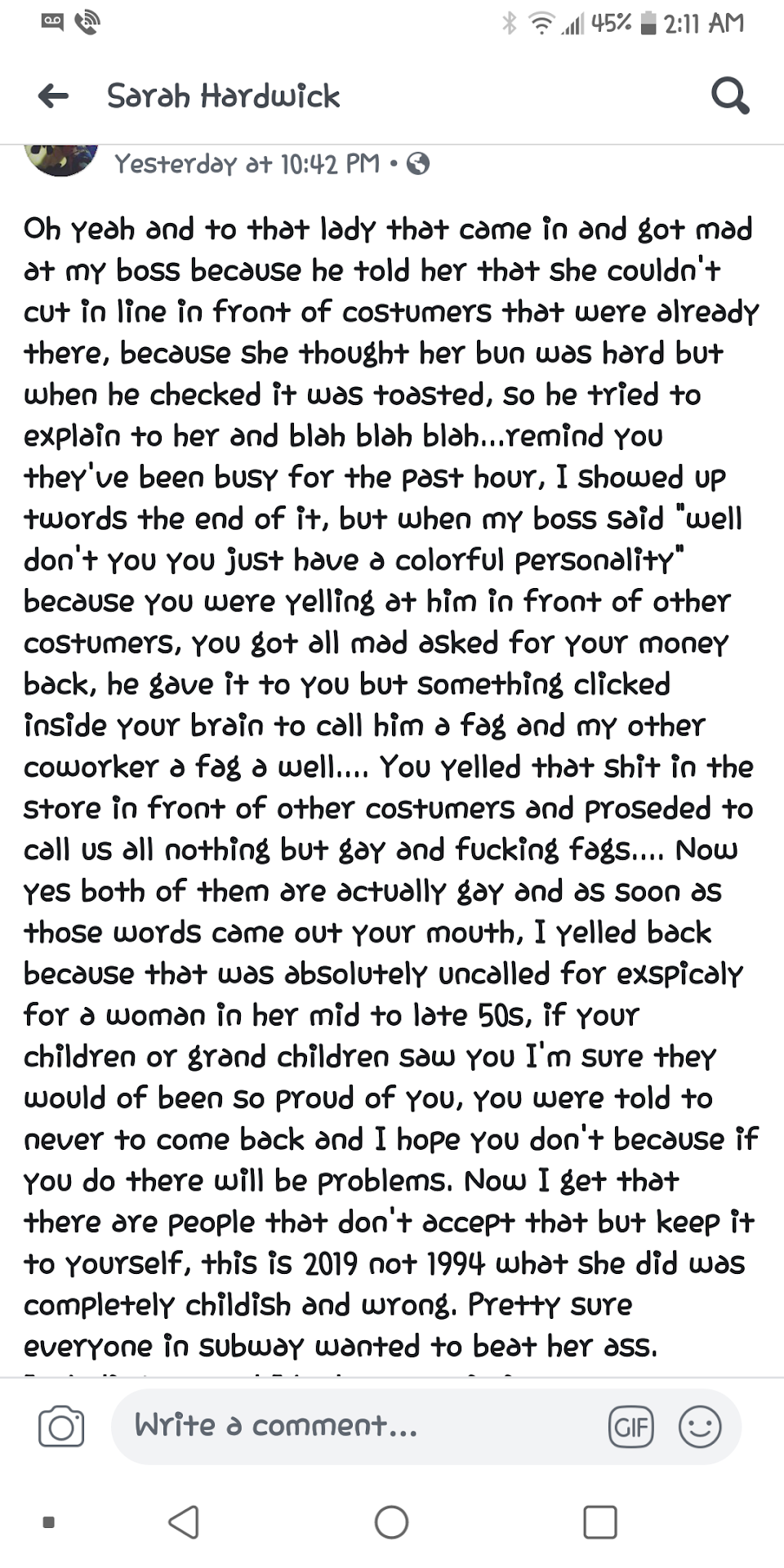I came to get a sub Monday October 24th at 4pm. A very nice young man named Ben was finishing making a young woman's salad. An older gentleman walks out from the back then rings her up. As she was paying for her salad Ben starts to make my sub. After putting my sub in the oven he then proceeded to make the family after me sandwiches. The oven timer goes off he takes my sub out and puts it on the counter so I can have my veggies put on it. The older gentleman was bagging up what looked like trash in a bag then put on gloves. He didn't wash his hands or even sanitize them and he was just handling money and bagging up trash. I asked him politely if he could wash his hands before making my sub he told me sure then went into the back and never came back. I assume he got upset that I asked him to wash his hands because I could hear him doing other things in the back making a bunch of noise and like I said he never came back up front. Even Ben noticed so he stopped what he was doing to finish my sub. Didn't think it would be such a hassle or inconvenience to disinfect your hands while handling food even though it's a part of your job description. Next time I'm going to record him and post it on every social media account so everyone can see him and not...