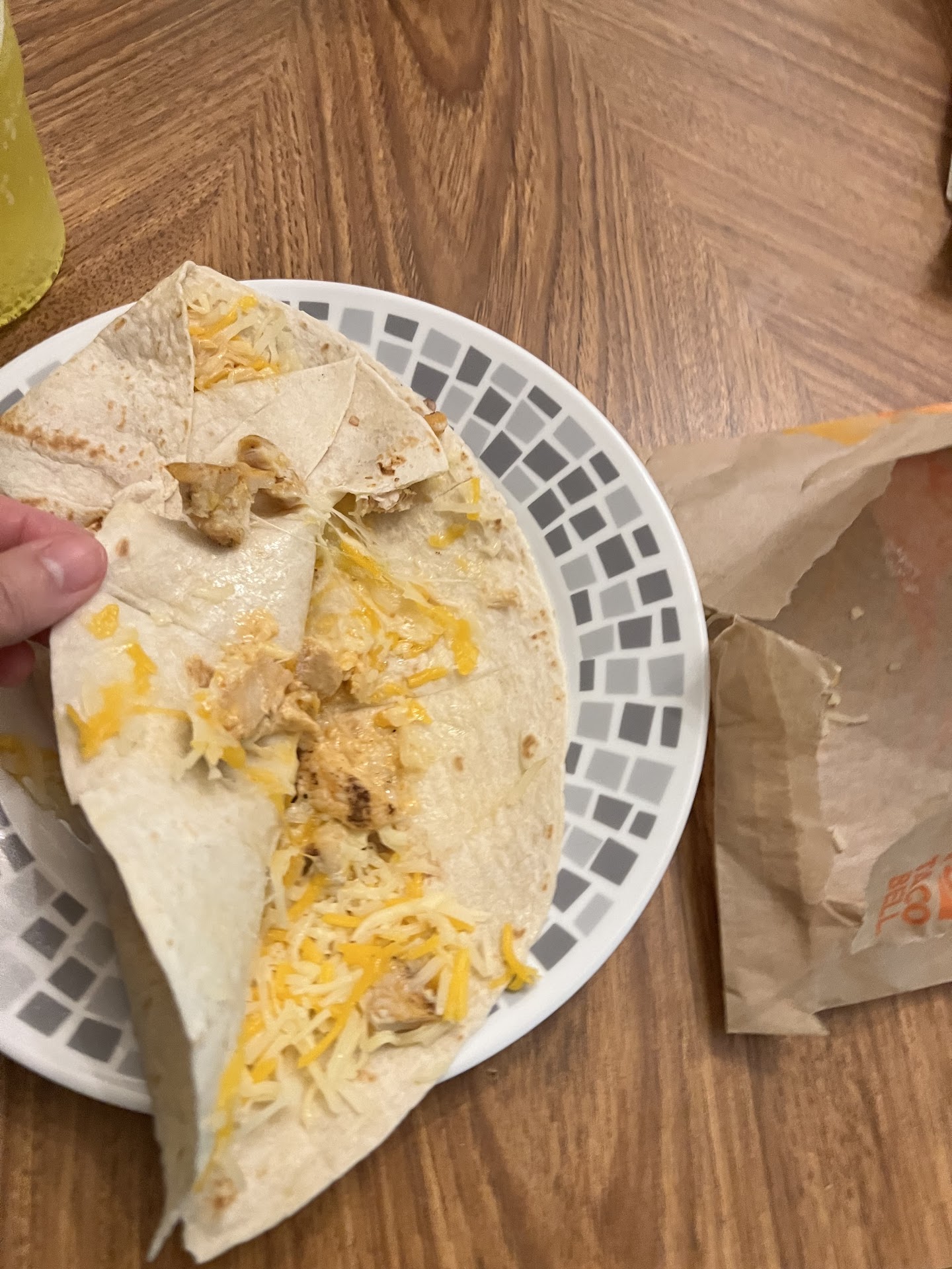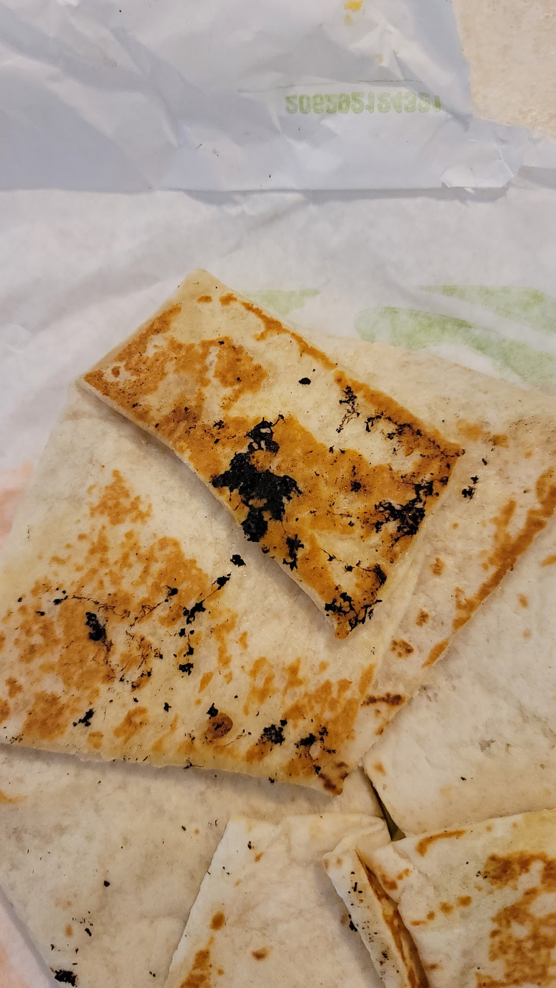 When we got home our food looked like it was all tossed into the air and landed on something hard. The taco shells were shattered. The steak quesadilla not even cut. My crunchwrap supreme had black carbon on the tortilla wrapper from previous burned meals because the equipment wasn't cleaned before my crunchwrap supreme was grilled.