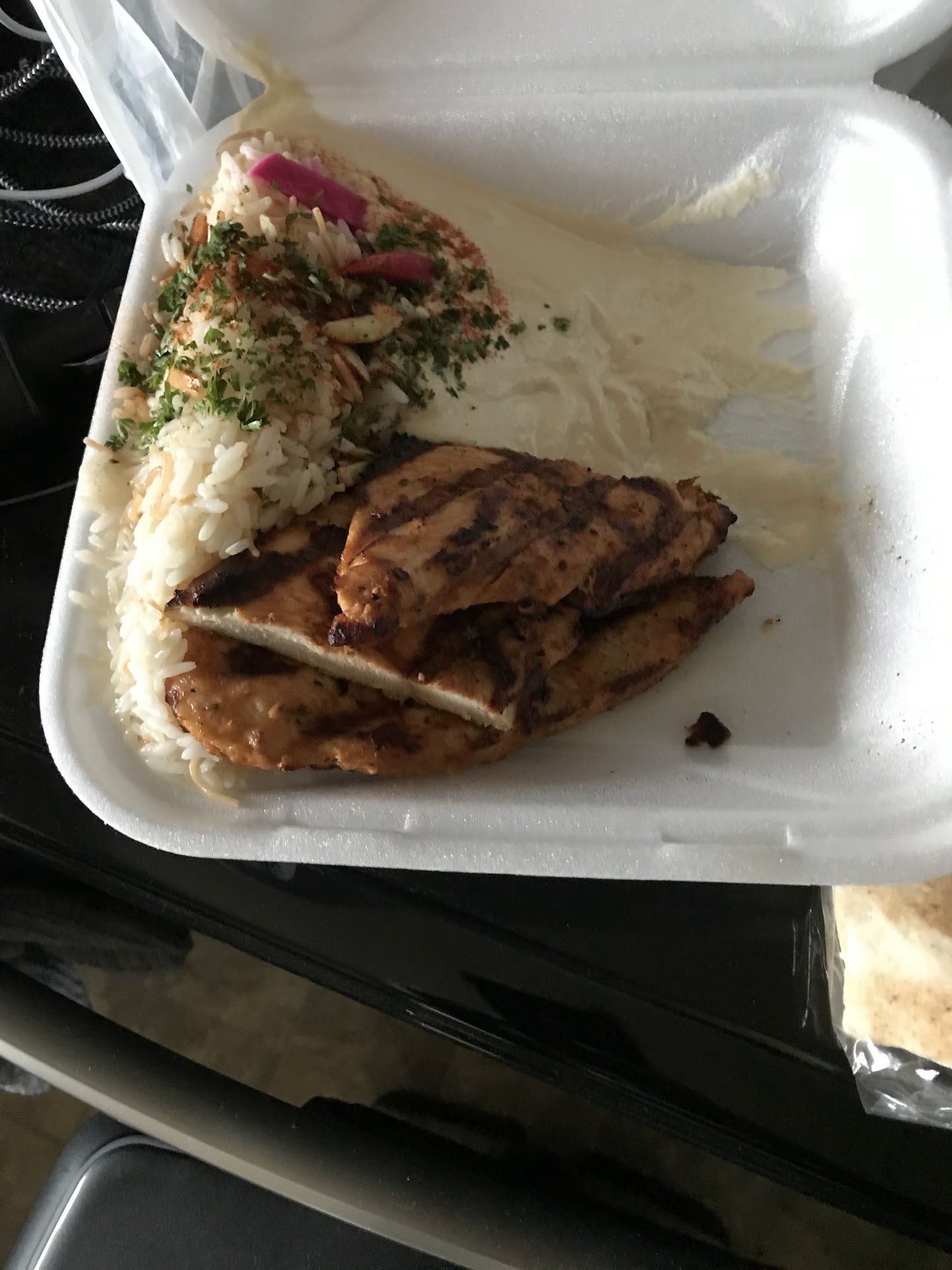 Hummus: Truly the best we've ever had. Having traveled overseas, we feel it's authentic. Fattoush Salad: Delicious and fresh. (You can get chicken on it - I recommend it.) Handmade pita chips: They don't always have them, but they're amazing. Ask. Garlic Dip: As a Polish girl, I love garlic. The dip is great. I put it on everything. I even get some to go, and dip some chicken nuggets from the airfryer in it. My Favorite Dish: Chicken Shawarma Dinner. The toasted almonds in the rice add such a lovely richness to the meal. They have pickled veggies (pink pickled veggies) and actual pickles that come with the meal. I love their pickles, and usually ask for extra. If you don't specify, sometimes they'll give you the pink instead. The chicken is always moist, but has this lovely bark on it from the grill. His favorite dish: Lamb Shish-tawook Sandwich. It's giant, and it's only like $5. They also have a chicken shawarma sandwich for the same price. Worth it.