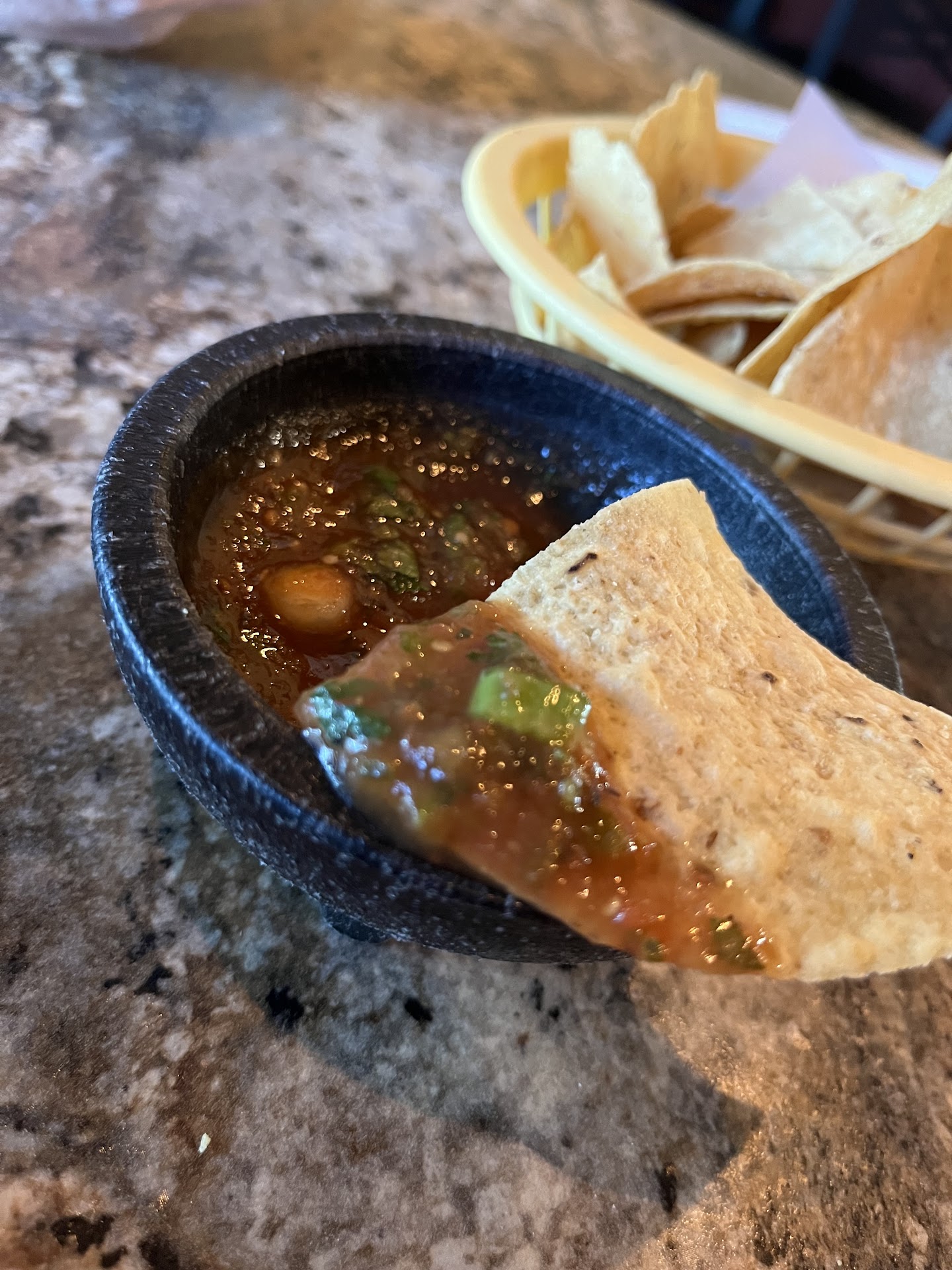 Complimentary chips and salsa...check. Delicious margaritas....check. And, fab food? Check. Check. Check.