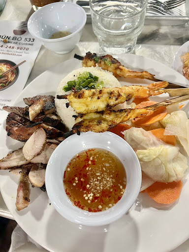 Read moreWe came in for dinner at this new restaurant Bun Bo 533 during its grand opening. The restaurant is spacious, the decor is lovely. The owner is a US Army Veteran running a small business so let’s show our military service men our support. My husband, of course, got the Bun Bo Hue and I ordered the shrimp garlic noodle with a sampler plate of appetizers to share along with a shrimp spring roll. (There are also vegetarian options too.) All the dishes were delicious and quite authentic so I highly recommend this restaurant!!! They’re newly open so go try it...