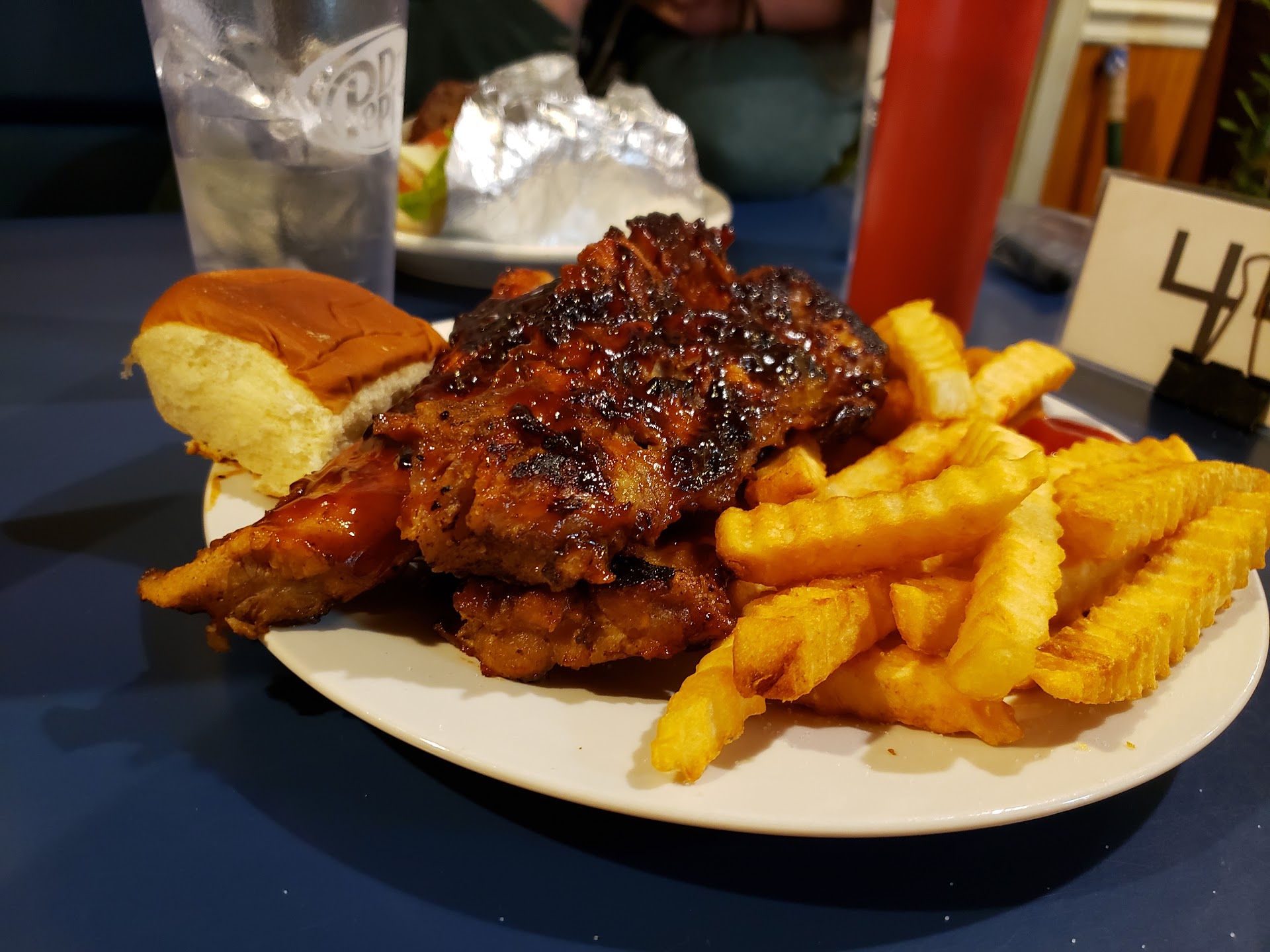 Read moreThe jugged sweet tea was the best thing. I ordered a cheeseburger plate which was bland, thrown together messily and seriously overcooked, the fries were under done, the macaroni pie was good. I ordered the steak fingers there was a little piece of chicken in there so I stuck that in my mouth and bit down so hard on a piece of bone I know it was bone because I took a pair of pliers and squished it to see if it was a rock. That was uncalled for and very painful. The steak fingers were gross, over cooked and just nasty. They were totally inedible and my fries were also undercooked . The okra tasted old like I got the last of it. I am so disappointed. I wasted over $20. The young girl at the take out window was very nice so that's something in...