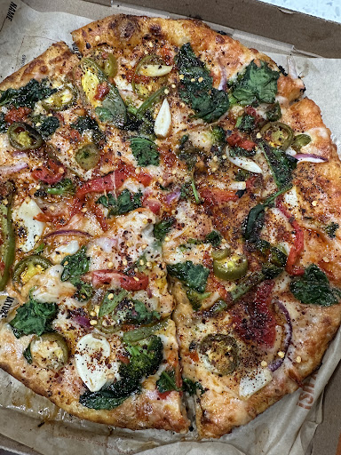 Biggest thing was no one was keeping the topping stocked. They have a 2nd counter I would guess is for the phone orders. The woman making those orders keep coming to the front counter to get toppings. The girl making my pizza at the front counter realize they where out of their main cheese at both counters Took them a minute to get more from the back room. How do you let your main ingredient run completely out? I noticed a lot of topping containers had a few pieces of the next topping over spilled in to them. Along with most containers almost empty of toppings. So the topping presentation was sloppy. Plus they were totally out of basil!!!