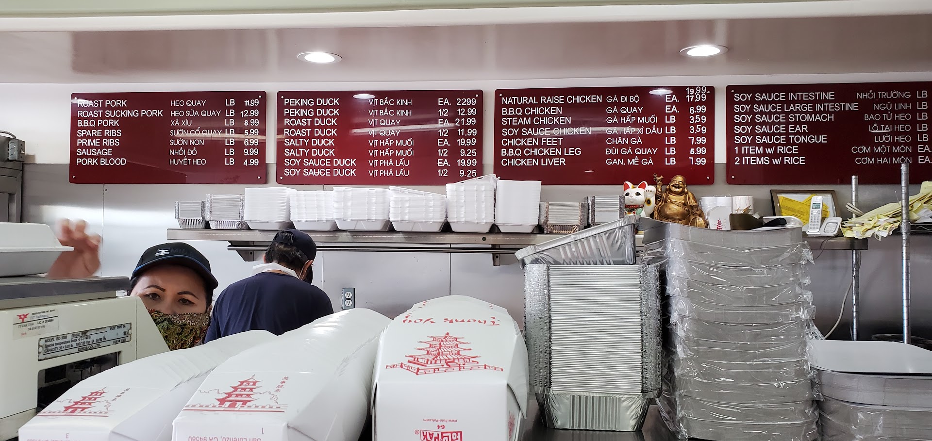 Read moreWe ordered in Vietnamese: Heo quay và Vịt quay, this didn't help, they didn't give the sections what we asked for, didn't find out until we get home, only a couple pieces of her quay crunchy skin, Vịt quay was chewy. The other reviews talked about this as a restaurant, NOT the setup that we can see, it's a takeout joint. Explore...