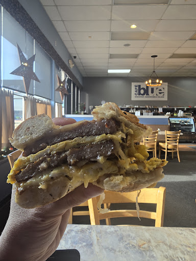 I had a unique sandwich called The Bronx. It was roast beef that was very moist and tender with grilled onions and melted cheese with spicy brown mustard on marbled rye bread. It was absolutely delicious. It could melt in your mouth and it didn't fall apart. My sandwich came with one side what you could choose from a selection of seven. I had Old Bay macaroni and cheese salad and it was very tasty. They had a variety of typical side dishes such as potato salad, broccoli salad, tossed salad, Caesar salad, Etc. Today my husband enjoyed a sandwich with french onion soup as his side. It was declared good to the last drop. My husband and I really enjoy eating food from Blue Bistro and we often have takeout from there. We've never been disappointed in anything we order there. My usual favorite is a shrimp salad wrap. They vary their selection of wraps. Based on just my personal judgment I believe there is over 6 oz of shrimp salad in this wrap. We have also used Blue Bistro to cater a baby shower for about 35 people. Everybody enjoyed the food. This restaurant is always clean, the staff are friendly and helpful, the seating is comfortable, and they have two family style...