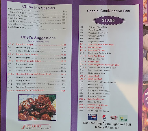 Read moreWorst Chinese food experience since a bad night in college. My wife and I got a carry out order tonight, Beef with Snow Peas for her, Szechuan Double Delight for me and egg rolls to share. Her dish was bland, the snow peas were gray and the beef was super-tough. My dish (which was on the "Chef's Specialties" menu and cost $13.50) was mostly filler vegetables like bok choy and baby corn, had 3 small shrimp, and the Szechuan Chicken was flavorless and 70% batter with a microscopic piece of mystery-meat "chicken" in the center. The egg rolls were the same way, flavorless and mostly fried wrapper. Our carry out total came to $27 including tip and if I could put a hold on the payment I would do do in a heartbeat. We will never go back and I encourage you to not waste your money...