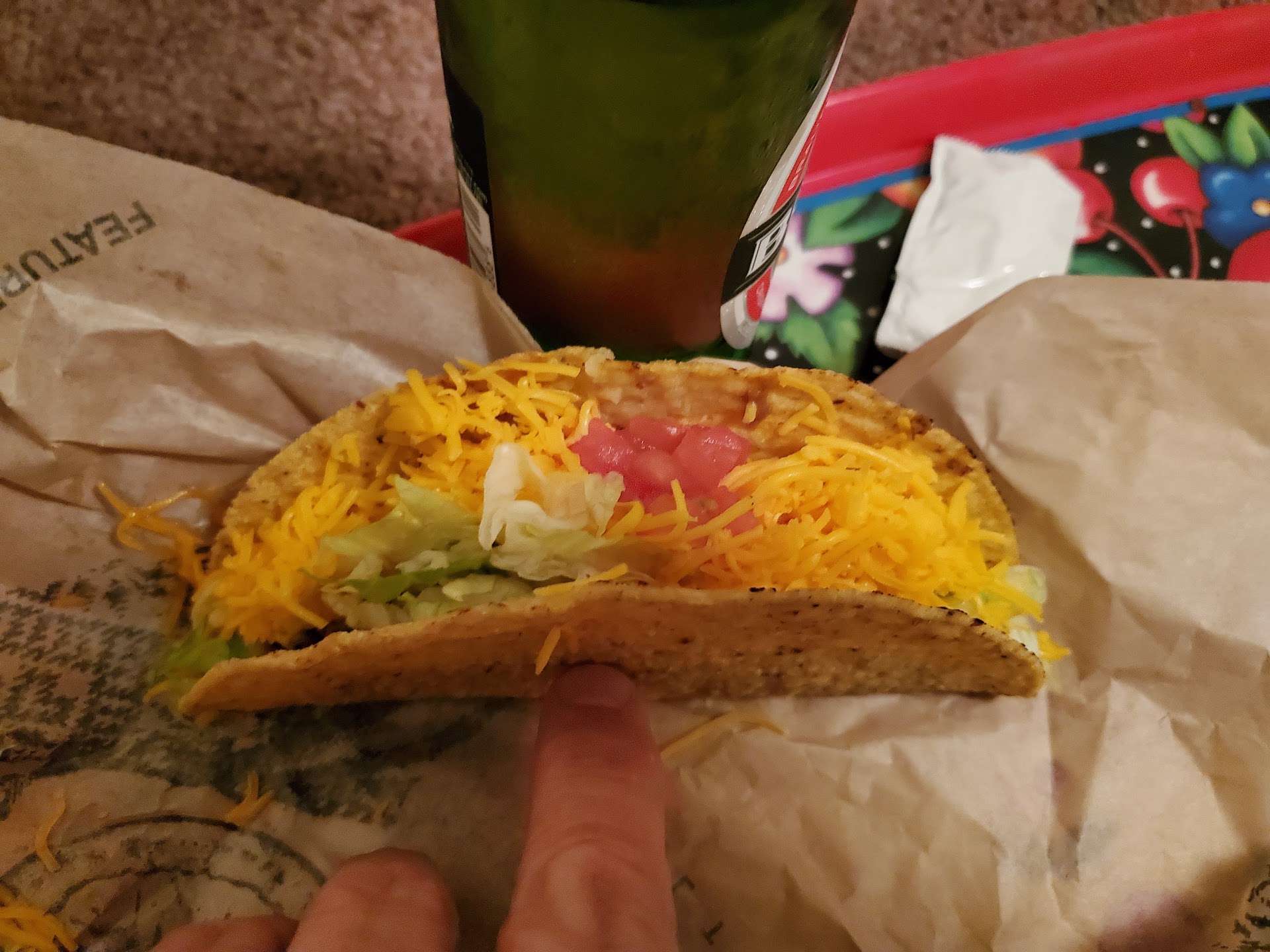 When I brought the food back, my girlfriend got four hard tacos when I ordered two hard and two soft at the drive thru. After I opened up my tacos al carbon, the corn tortilla was too hard for the soggy chicken and the taco ended up falling apart. On top of that, I never got my receipt! Not that it was that big of a deal, but I was hoping to use it to get my rewards points on the Del Taco app!