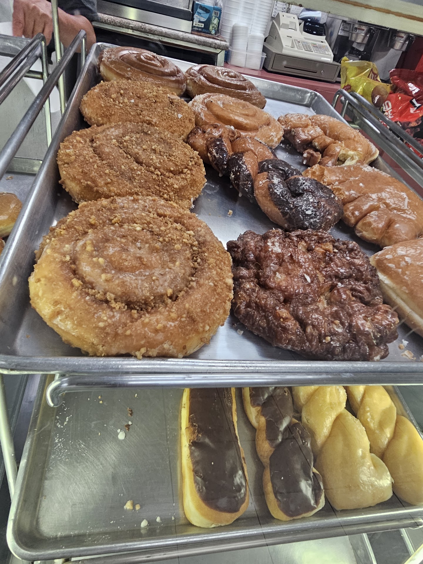 I don't understand how anyone can say these donuts are fresh or soft etc... I've been trying to give this place a chance multiple times and they still have terrible donuts for $1.40 each or some days $1.20 or $1.50 etc...Its either they don't change the oil or they are selling the old donuts from yesterday because they are stale tasting, old oil cardboard donuts lol... Anyways besides that the people are great and they have their local people always having coffee and chilling out. Because without that I would have given...